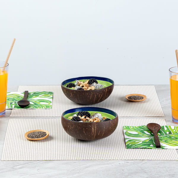 Enhance your dining experience with eco-friendly sophistication. Coco Casa 16 oz Metallic Blue Handmade Coconut Bowls feature a handmade design that adds authenticity to your culinary presentations, making them the ideal choice for chefs seeking unique tableware. The metallic blue interior of these handmade coconut bowls offers a stunning and one-of-a-kind look, elevating the visual appeal of your dishes with every use. Crafted from sturdy coconut, these Vietnam coconut bowls are perfect for serving both warm and cold foods, ensuring versatility in your foodservice operations. Measuring 5.91 inches in length and width, and 2.36 inches in height, these bowls provide ample space for creative plating, while their biodegradable and compostable nature supports sustainable practices. Serve dishes in style with the assurance of BPA-free, greaseproof, and freezer-safe qualities. Sold in a 10 count box.