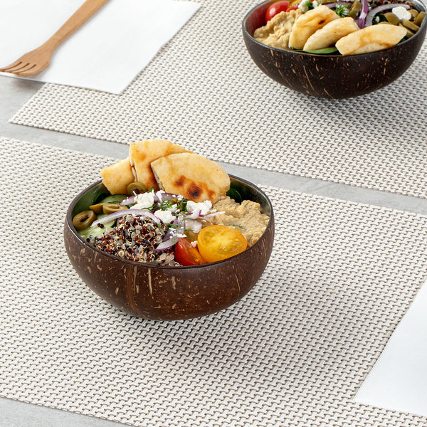 Enhance your dining experience with authentic presentation. Coco Casa 16 oz Metallic Silver Handmade Coconut Bowls are handmade to add a touch of authenticity to your culinary creations, making them perfect for showcasing your most exquisite dishes. With a metallic silver interior, these decorative coconut bowls provide a one-of-a-kind look that elevates the visual appeal of your meals. Crafted from sturdy coconut material, these bowls are designed to serve both warm and cold foods effectively, ensuring versatility in any foodservice setting. Measuring 5.91 inches in length, 5.91 inches in width, and 2.36 inches in height, these coconut bowls offer a generous 15.84-ounce capacity, ideal for serving a variety of dishes. As they are biodegradable, BPA-free, and compostable, they support sustainable operations while being freezer-safe and greaseproof. Elevate your table settings with these eco-friendly coconut serving bowls. Sold in a 1 count box.