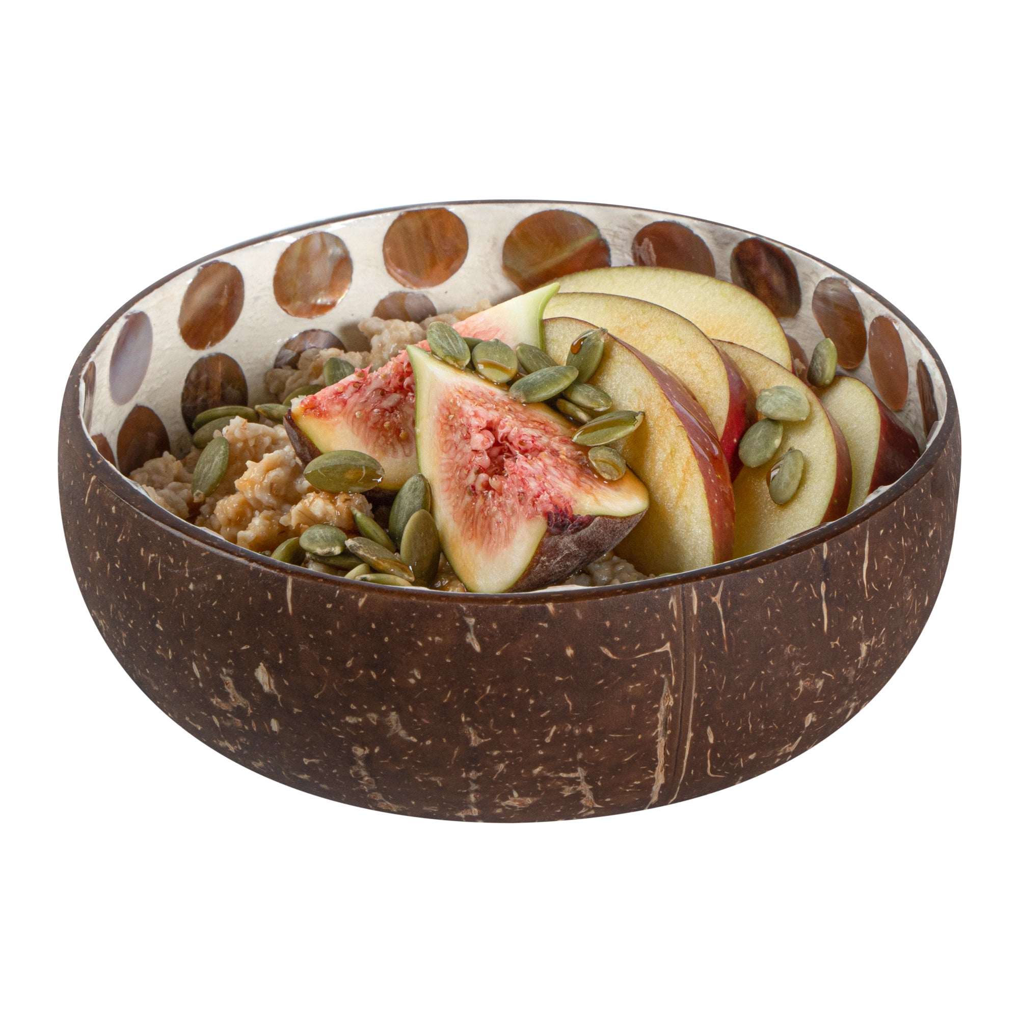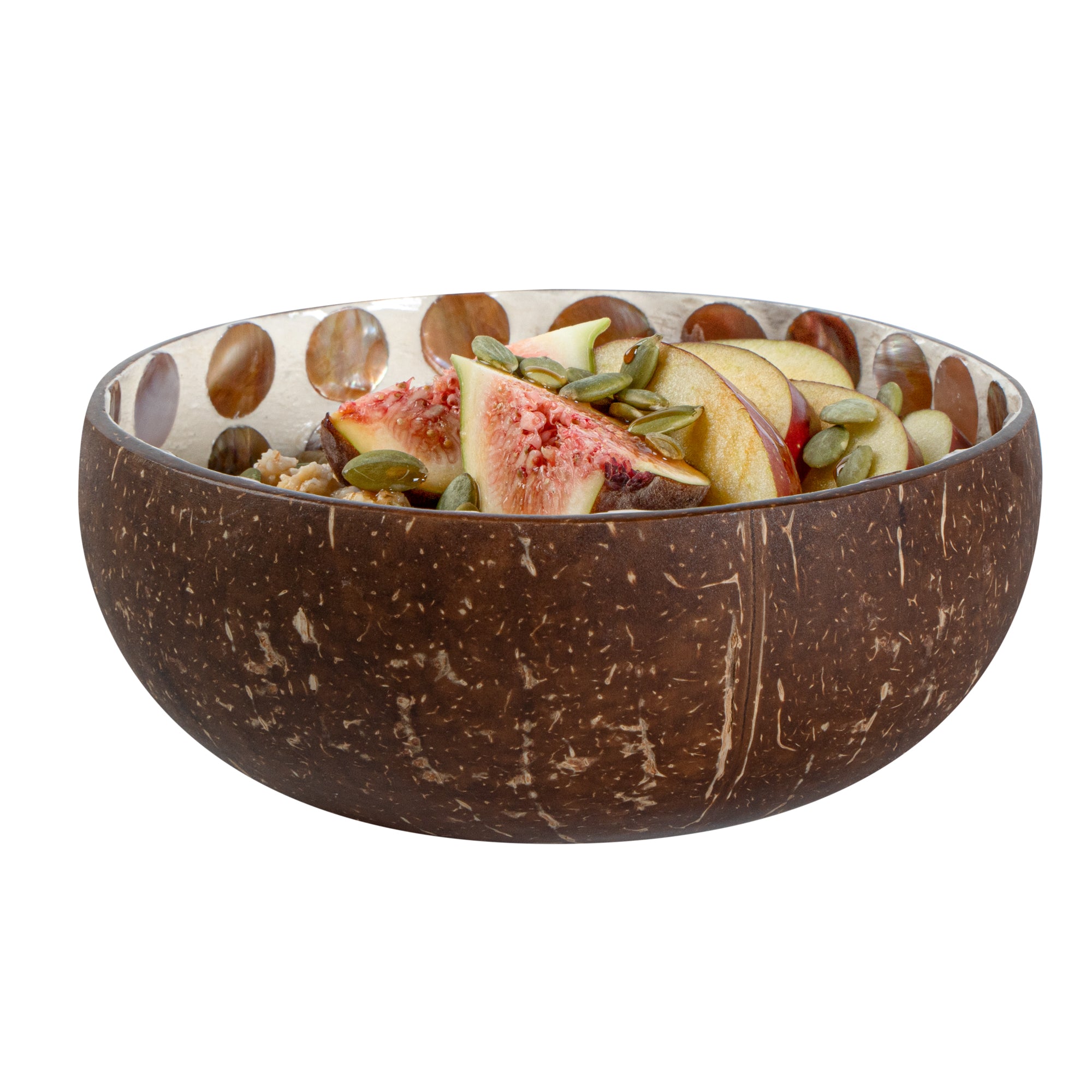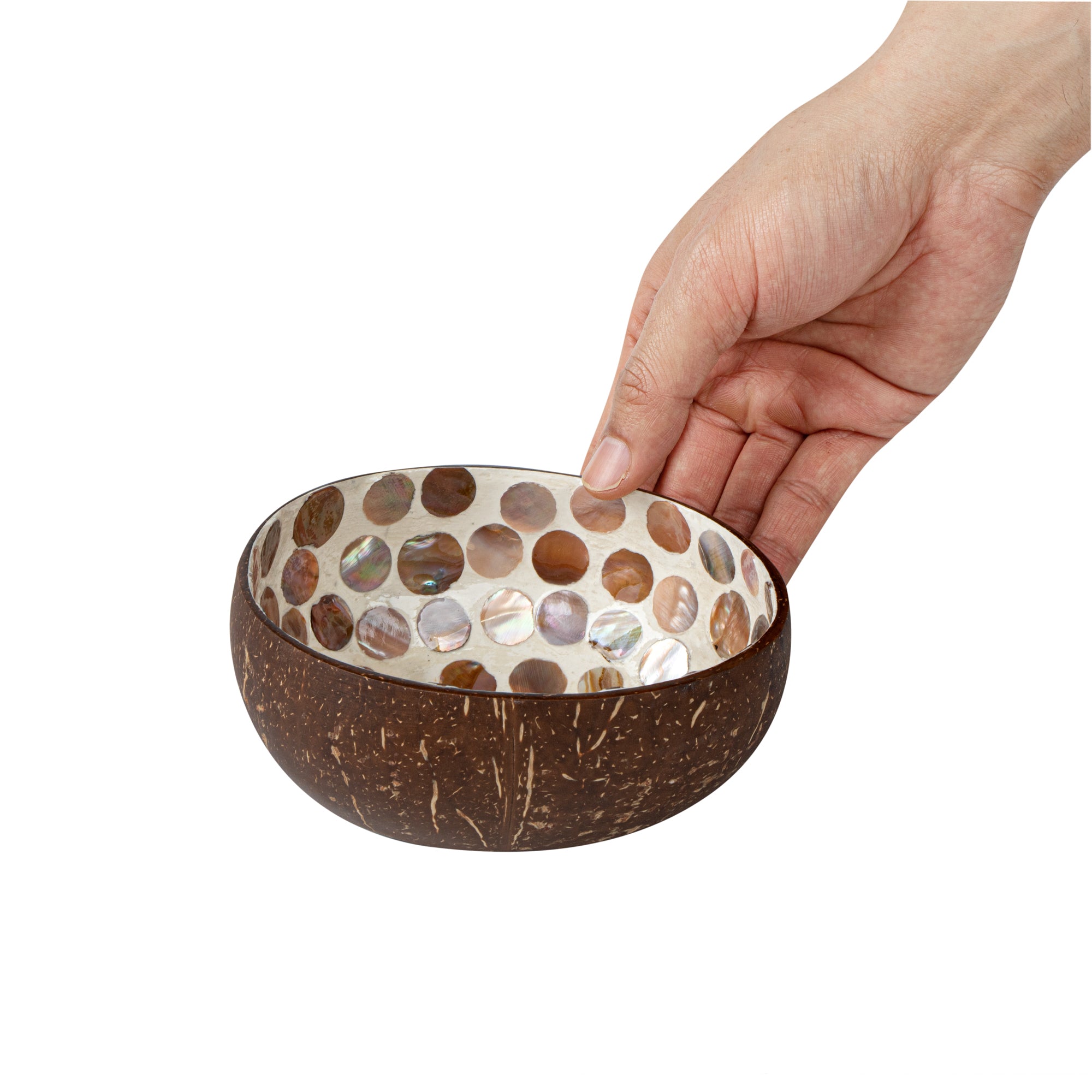 Enhance your dining presentation with the elegance of authenticity. The Coco Casa 16 oz White Handmade Circle Coconut Bowl offers a distinctive touch with its handmade craftsmanship, providing culinary creations with an authentic flair. Each coconut bowl features unique circular mother-of-pearl inlay patterns, ensuring your dishes stand out with a one-of-a-kind look. Made from sturdy coconut, these bowls are designed to safely serve both warm and cold foods, adding versatility to your foodservice operations. With dimensions of 5.91 inches by 5.91 inches by 2.36 inches, these biodegradable bowls are perfect for serving a variety of dishes. Their sustainable coconut material not only supports eco-friendly practices but also enhances your buffet or catering services with a natural elegance. Add a touch of sophistication to your tableware with this coconut shell serving dish that is both compostable and freezer-safe. Sold in a 1 count box.