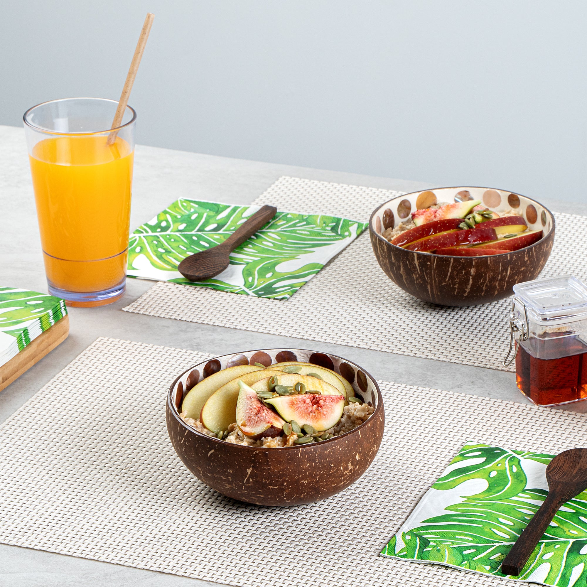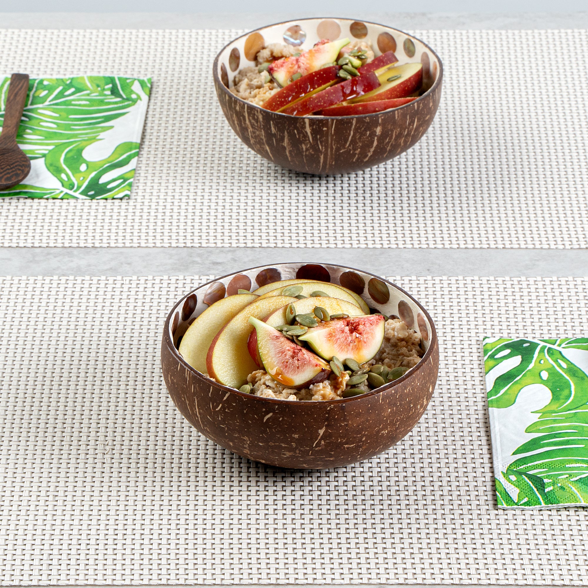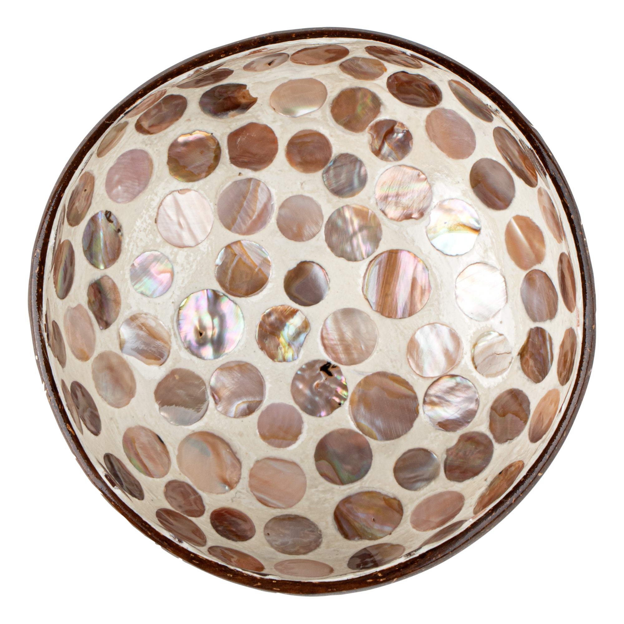 Enhance your dining presentation with the elegance of authenticity. The Coco Casa 16 oz White Handmade Circle Coconut Bowl offers a distinctive touch with its handmade craftsmanship, providing culinary creations with an authentic flair. Each coconut bowl features unique circular mother-of-pearl inlay patterns, ensuring your dishes stand out with a one-of-a-kind look. Made from sturdy coconut, these bowls are designed to safely serve both warm and cold foods, adding versatility to your foodservice operations. With dimensions of 5.91 inches by 5.91 inches by 2.36 inches, these biodegradable bowls are perfect for serving a variety of dishes. Their sustainable coconut material not only supports eco-friendly practices but also enhances your buffet or catering services with a natural elegance. Add a touch of sophistication to your tableware with this coconut shell serving dish that is both compostable and freezer-safe. Sold in a 1 count box.