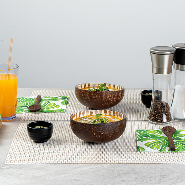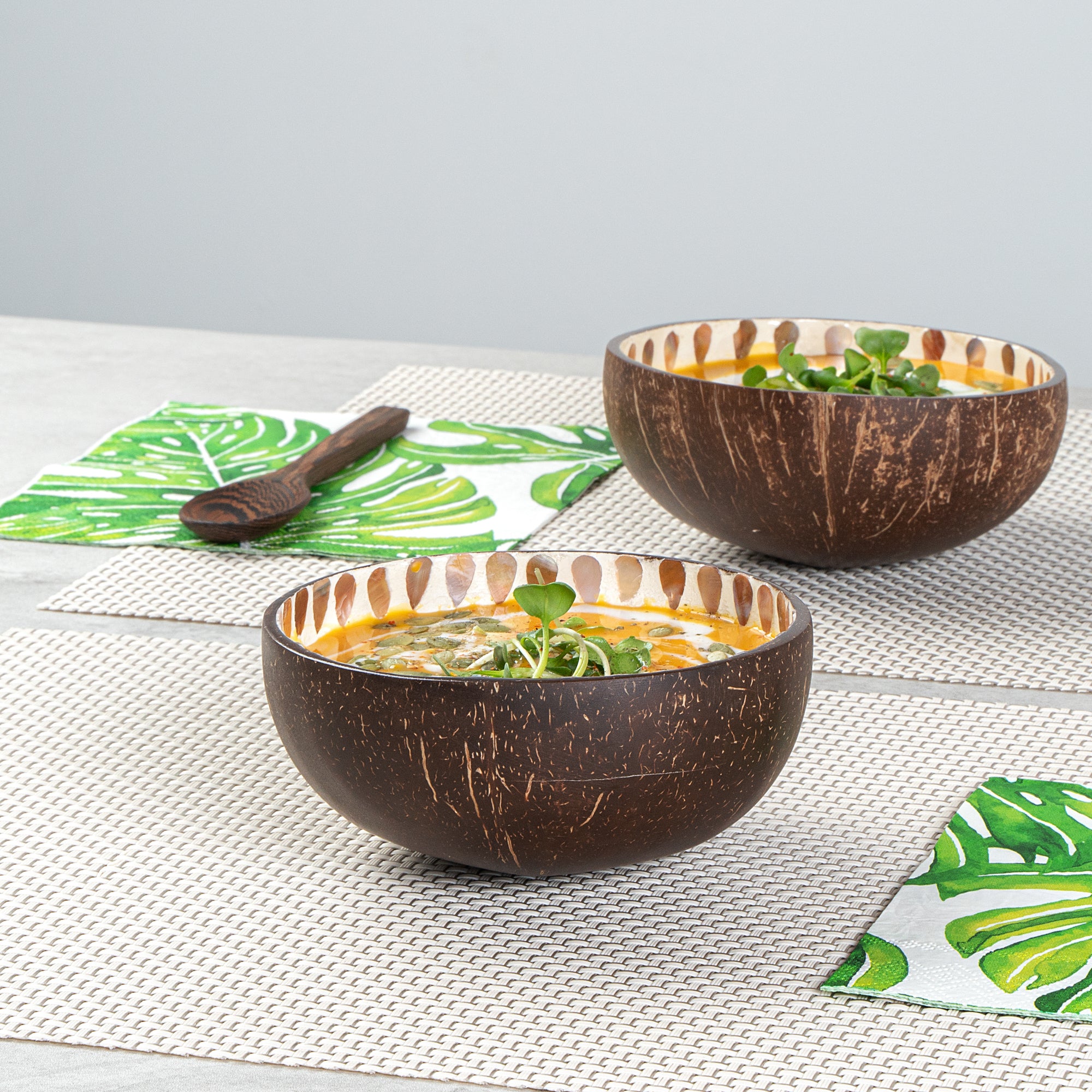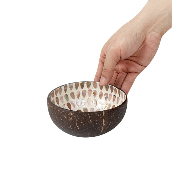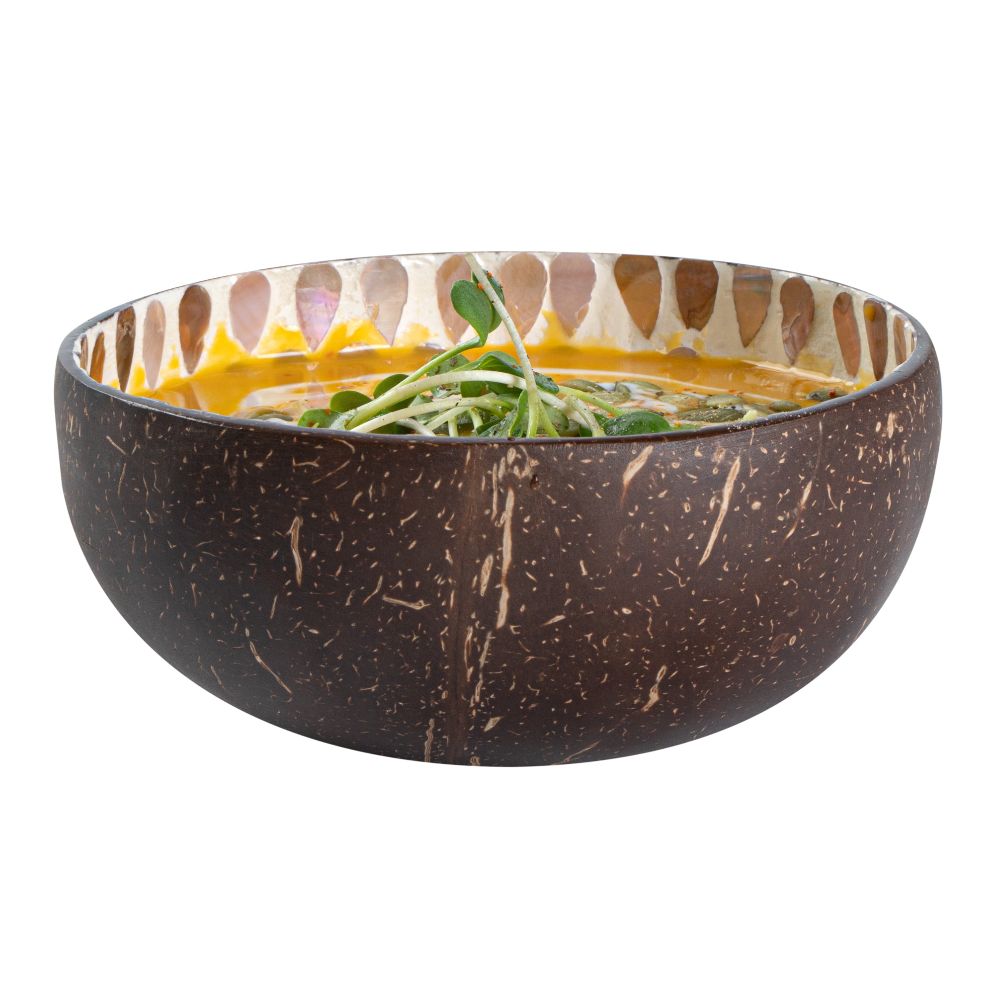 Elevate your culinary presentations with authentic elegance. Coco Casa 16 oz White Handmade Teardrop Coconut Bowls feature handmade craftsmanship that adds a distinctive touch to every dish, enhancing your foodservice offerings with a natural coconut bowl. The unique teardrop patterns and mother-of-pearl inlay give your presentations a pearl inlay bowl design that captivates diners, ensuring your creations stand out. With dimensions of 5.91 inches in length and width, and a height of 2.36 inches, these biodegradable bowls offer a sturdy design that effortlessly accommodates both warm and cold dishes, making them an indispensable asset for versatile menu items. Made from sustainable coconut, these bowls are not only biodegradable but also BPA-free and compostable, aligning with eco-conscious dining trends. Incorporate these beautiful and functional pieces into your service to make a memorable impression. Sold in a 1 count box.