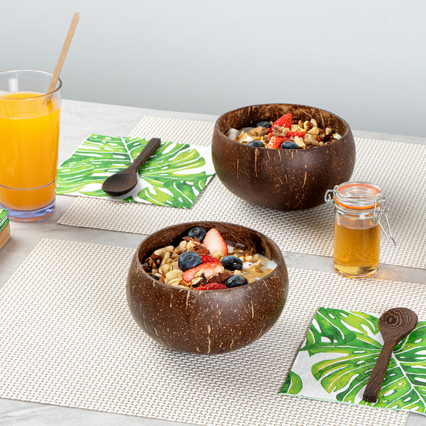 Enhance your presentation with naturally beautiful serving ware. Coco Casa 21 oz Handmade Coconut Bowls offer a unique, handmade finish that adds authenticity to every culinary creation. Expertly crafted from sturdy coconut, these bowls are perfect for serving both warm and cold dishes, making them a versatile addition to your kitchen. With a diameter of 5.91 inches, each coconut serving bowl accommodates up to 21 ounces, ideal for salads or soups. The simple cleanup allows for long-term reuse, reducing waste and promoting sustainability. Plus, these coconut salad bowls are biodegradable, BPA-free, and compostable, aligning with eco-friendly kitchen practices. Elevate your dining experience and impress your guests with these environmentally-conscious serving options. Sold in a 10 count box.