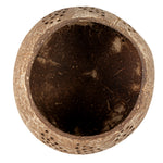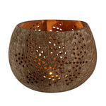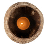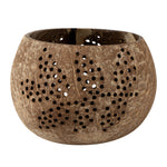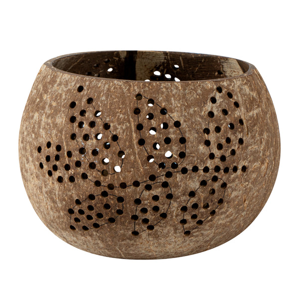BROWN HANDMADE COCONUT SHELL CANDLE HOLDER - LEAF PATTERN