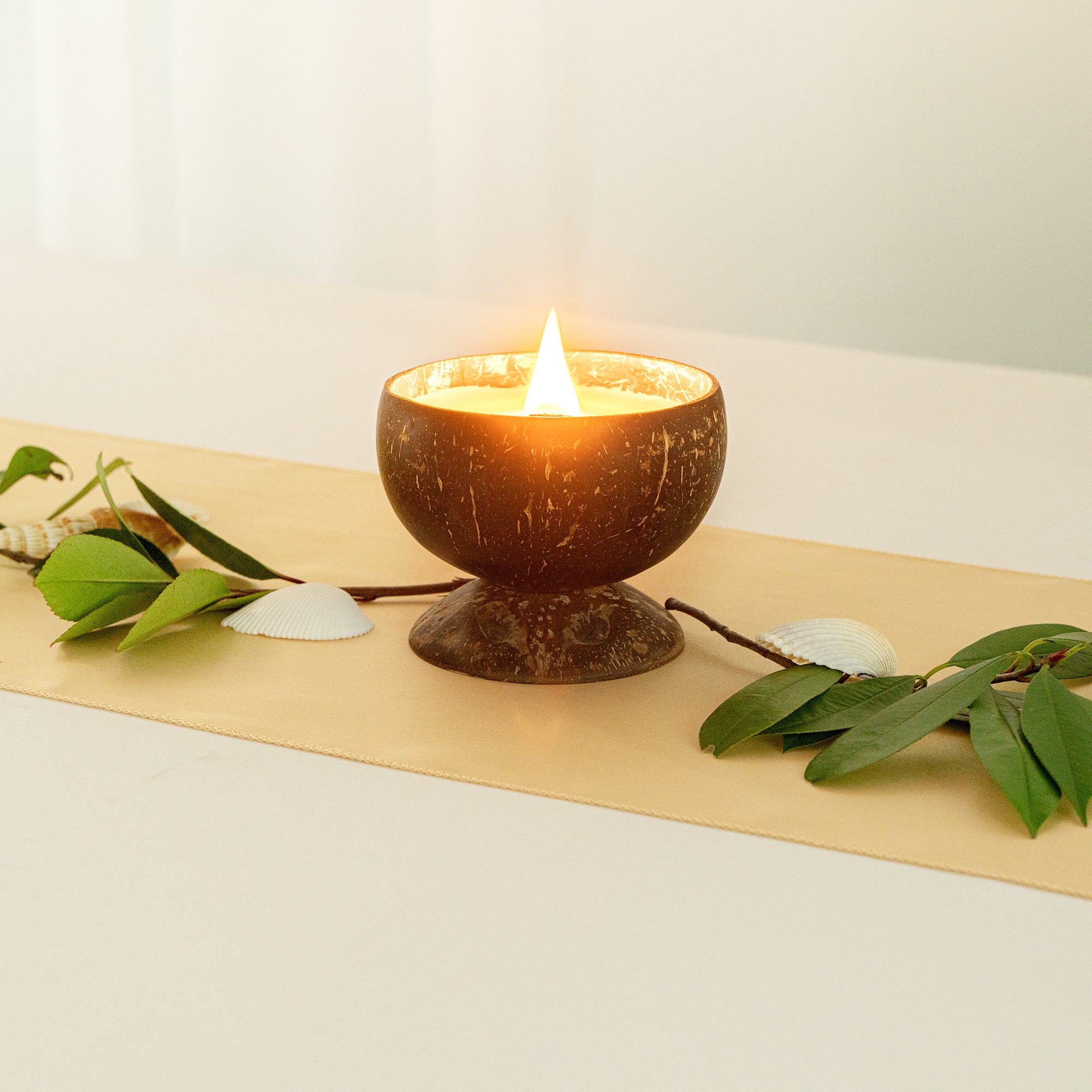 Immerse your space in the warm glow and soothing aroma of our Coco Casa Handmade Coconut Candle Bowls. Handcrafted to perfection, these coconut shell candles are more than just a source of light as they are a testament to sustainability and artistry. The natural coconut bowls of these candles, reclaimed from waste that would have otherwise ended up in a landfill, reduce waste and add an organic touch to your decor. A hand-poured blend of soy and coconut wax of these shell candles releases a calming sandalwood fragrance, creating a harmonious ambiance. The wooden wick, free from zinc, provides a consistent burn, ensuring that these handmade scented candles last for up to 13 hours. With a built-in base, these coconut wax candles are stable and safe, perfect for creating a welcoming atmosphere in any setting. After these candles have fully burned, the coconut bowl can be reused, further reducing waste. These coconut bowl candles are both commercially compostable and biodegradable, making them an environmentally friendly choice. Measuring 4 inches in diameter and 2.75 inches in height, they are the perfect size for tabletops or counters. Sold in a 10 count box. This item will only degrade outside of the traditional solid waste stream.