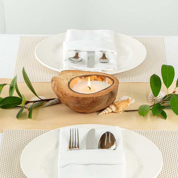 Experience a tropical ambiance with our Coco Casa Handmade Coconut Shell Husk Candle. Infused with a coconut mango scent, this coconut shell candle transports your senses to an exotic getaway. Crafted with a double wax blend of coconut and soy wax, this scented candle provides a cleaner and longer burn. The wooden pick in this handmade candle ensures an even and consistent burn, enhancing your customers' dining experience. The maximum burn time of this coconut wax candle offers a relaxing and inviting atmosphere for up to 13 hours. The eco-friendly coconut shell husk exterior of this scented candle makes this coconut mango scented candle commercially compostable and biodegradable. Measuring 6.5 inches in diameter by 2.5 inches in height, this wooden wick candle perfectly complements any table setting. Coconut shells naturally vary in size, due to which the dimensions of our shells may differ slightly. Sold in a 1 count box. This item will only degrade outside of the traditional solid waste stream.