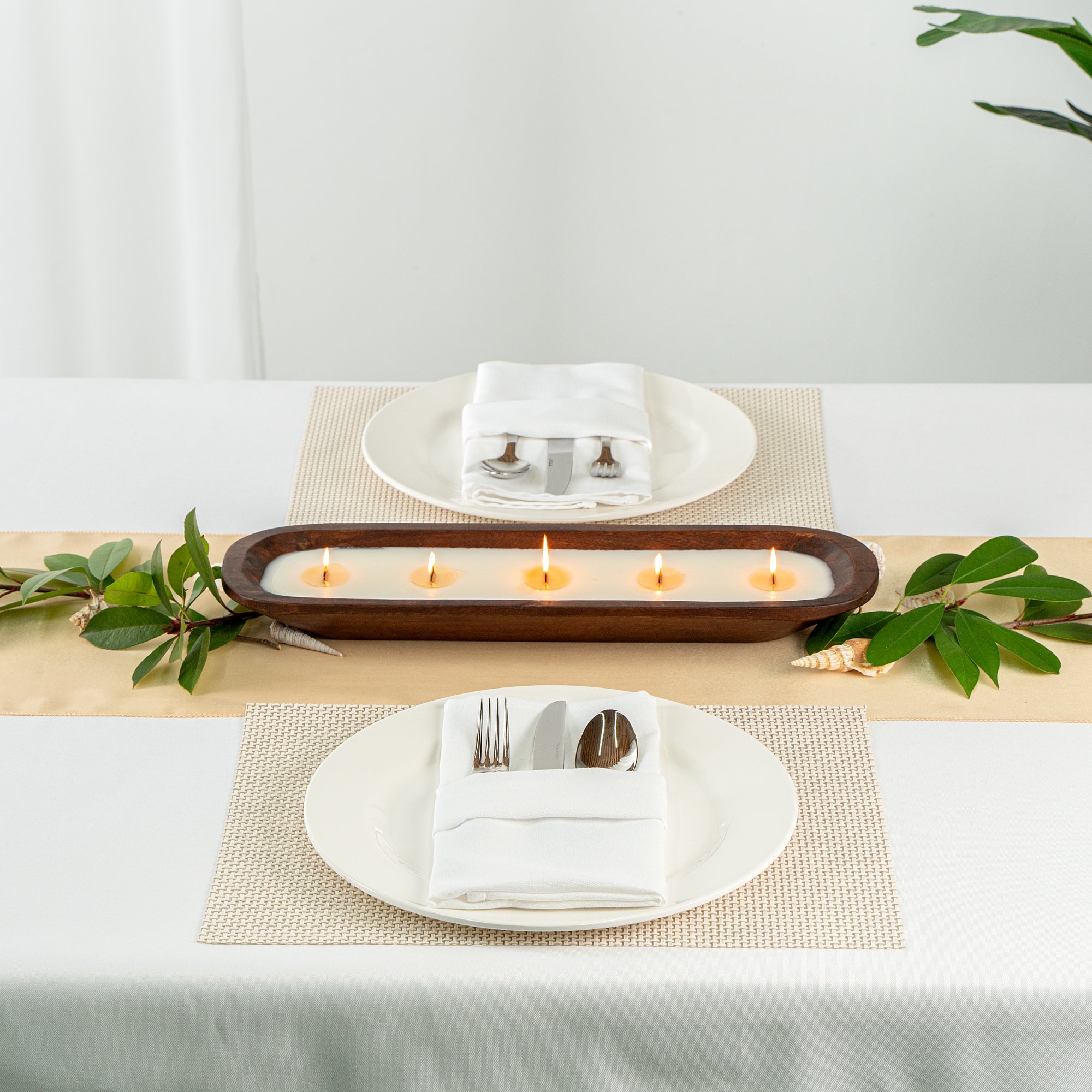 Enhance the ambiance of your bakery, restaurant, or bistro with our Coco Casa Handmade Wood Dough Bowl Candles. These natural and handmade dough bowl candles boast a delightful coconut mango fragrance that fills the room with a warm and inviting scent. Each wooden bowl is sustainably sourced, reducing waste and ensuring a reclaimed, eco-friendly option for your establishment. The unique double wax blend of soy and coconut wax of these candles ensures a long-lasting burn time of up to 20 hours, while the 5 wooden wicks provide a charming crackle effect. These handmade scented candles are zinc-free, phthalate-free, and have an attractive appearance. Once these candles have burned down, the reusable bowls can be repurposed for an array of uses. These wooden bowl candles are commercially compostable and biodegradable, ensuring a minimal environmental impact. Measuring 17.75 inches in length by 5.5 inches in width by 2 inches in height, these bread bowl candles make a perfect centerpiece for any table setting. Sold in a 10 count box. This item will only degrade outside of the traditional solid waste stream.