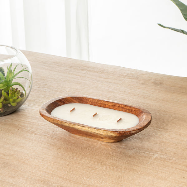 HANDMADE WOOD DOUGH BOWL CANDLE - COCONUT MANGO