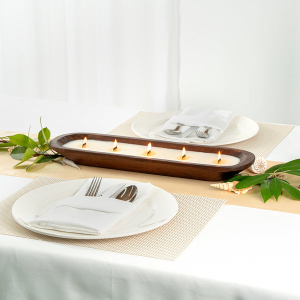 Perfectly blend tradition and style with our Coco Casa Handmade Wood Dough Bowl Candles. These wood dough bowl candles are handcrafted, giving each piece a unique touch. Infused with a soothing lavender fragrance, these dough bowl candles create a serene ambiance for your customers. The double wax blend of these candles, a harmonious combination of soy and coconut wax, ensures a cleaner and longer burn, lasting up to 20 hours. These candles are hand-poured into a wooden bowl that not only acts as a sustainable holder but also reduces waste, diligently addressing eco-concerns. With 5 wooden wicks, these bread bowl candles provide a multi-point light source, enhancing the aesthetic appeal of your space. These wooden bowl candles are zinc-free, phthalate-free, commercially compostable, and biodegradable, ensuring a safe and healthy environment for your customers. Once these candles are fully used, the wooden bowls can be reused, further minimizing waste. Measuring 17.75 inches in length by 5.5 inches in width by 2 inches in height, these candles in a wooden bowl can comfortably fit on tables or counters. Sold in a 10 count box. This item will only degrade outside of the traditional solid waste stream.