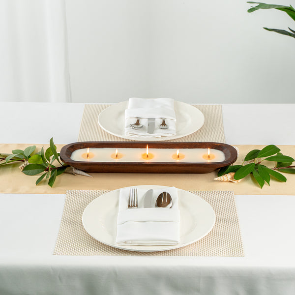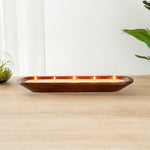 Bring natural elegance and irresistible fragrance to your establishment with our Coco Casa Handmade Wood Dough Bowl Candle. This wooden bowl candle features a pineapple papaya fragrance that enchants the senses, while the natural, handmade wooden bowl adds a touch of sustainable charm to any setting. Hand-poured with a double wax blend of soy and coconut wax, this dough bowl candle ensures a clean and consistent burn. The five wooden wicks of this wax candle not only provide a cozy crackling sound but are also zinc-free and phthalate-free, ensuring a safer and eco-friendly option for your business. With a burn time of up to 20 hours, this handmade scented candle is perfect for creating an inviting atmosphere in restaurants, bakeries, or catering events. The wooden bowl is crafted from reclaimed waste that would have otherwise ended up in a landfill, making it a sustainable and eco-conscious choice. After this candle has been used, the bowl can be easily repurposed for display purposes. Measuring 17.75 inches in length by 5.5 inches in width by 2 inches in height, this bread bowl candle is not only visually appealing but also commercially compostable and biodegradable. Sold in a 1 count box. This item will only degrade outside of the traditional solid waste stream.