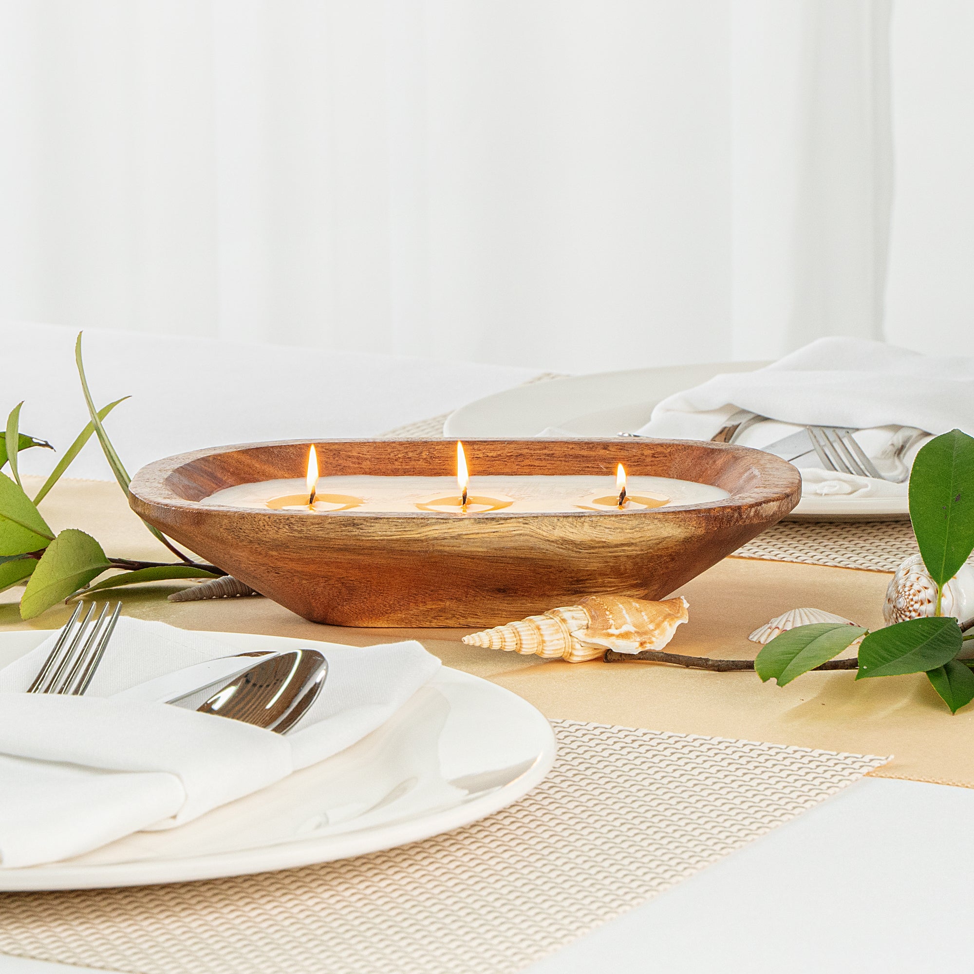 Illuminate your culinary creations with our Coco Casa Handmade Wood Dough Bowl Candle. This dough bowl candle is hand-poured and boasts a tantalizing pineapple papaya fragrance that enhances the ambiance of your food establishment. Made from reclaimed wood that would otherwise end up in a landfill, this wooden bowl candle is an eco-friendly choice for restaurants, bistros, and caterers. The double wax blend of soy and coconut wax, paired with 3 wooden wicks, ensures a burn time of up to 18 hours, perfect for setting the mood throughout your service hours. This candle in a wooden bowl is not only zinc-free and phthalate-free but also commercially compostable and biodegradable, ensuring it aligns with sustainable practices in the food industry. The wooden bowl of this candle can be reused once the candle is fully burned, further reducing waste. Measuring 9 inches in length by 5.5 inches in width by 2 inches in height, this artisanal, handmade scented candle is a unique way to add a warm, inviting glow to your space while demonstrating your commitment to sustainability. Sold in a 1 count box. This item will only degrade outside of the traditional solid waste stream.