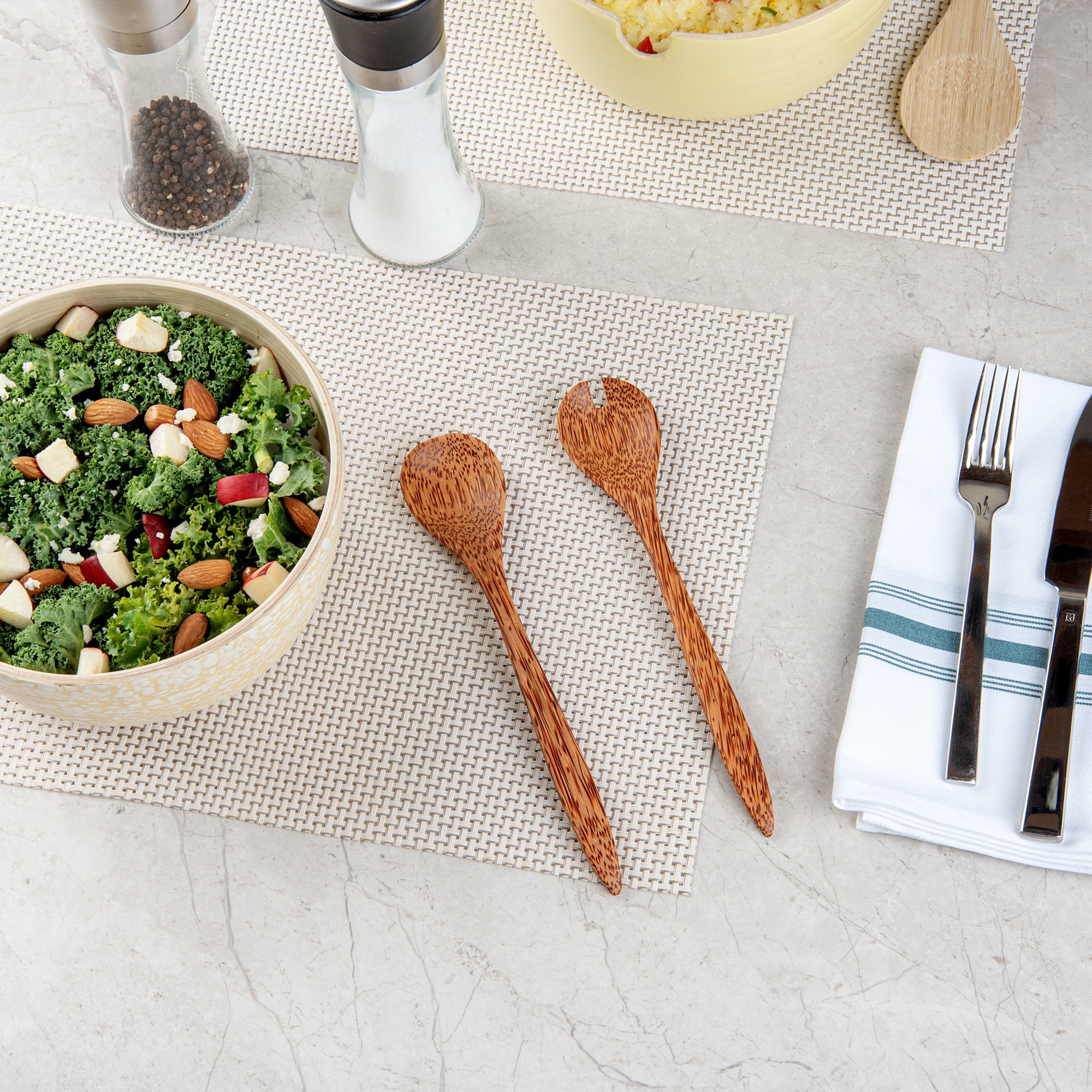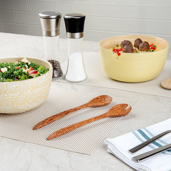 Enhance your dining presentation with our Coco Casa Natural Handmade Coconut Serving Utensil Set. These serving spoons combine natural coconut utensil design, offering an eco-friendly alternative to traditional serving tools while enhancing dish presentation with their polished finish. Greaseproof and suitable for both hot and cold dishes, these biodegradable coconut utensils make serving meals a breeze. With a length of 9.5 inches, this coconut utensil set is versatile for both cold salads and hot desserts, making it a valuable addition to any catering event or buffet line. Sold in a 20 count box. These items will only degrade outside of the traditional solid waste stream.