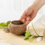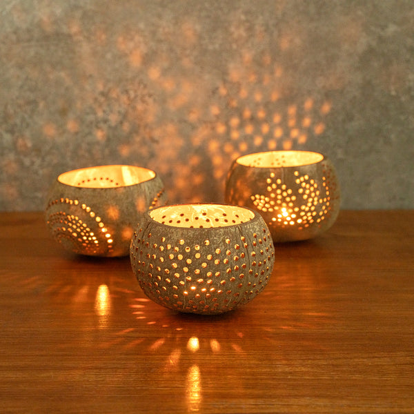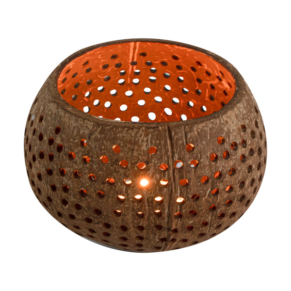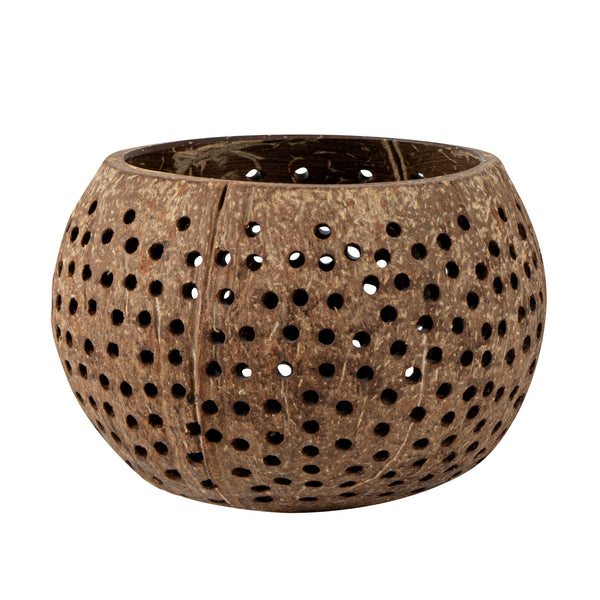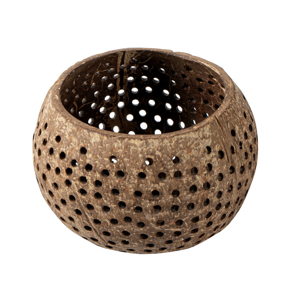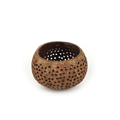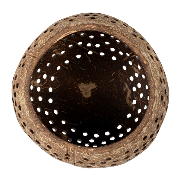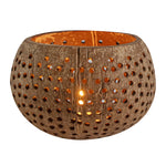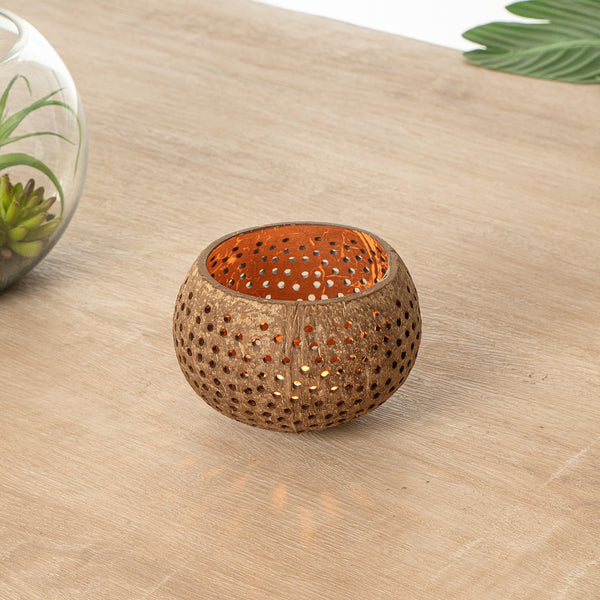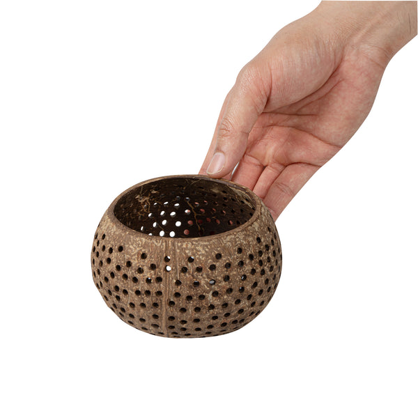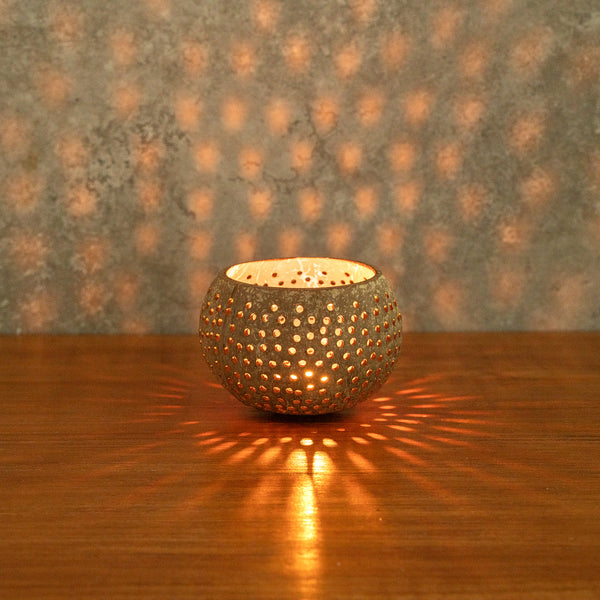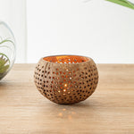 TAN HANDMADE COCONUT SHELL CANDLE HOLDER - DOTTED PATTERN