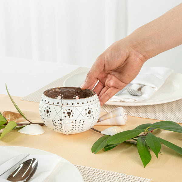 To let you pick the perfect candle holder for your theme and tablescapes, these coconut bowl candle holders are available in a variety of patterns and colors. Elevate your space effortlessly.