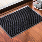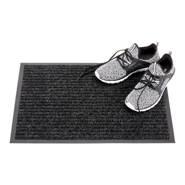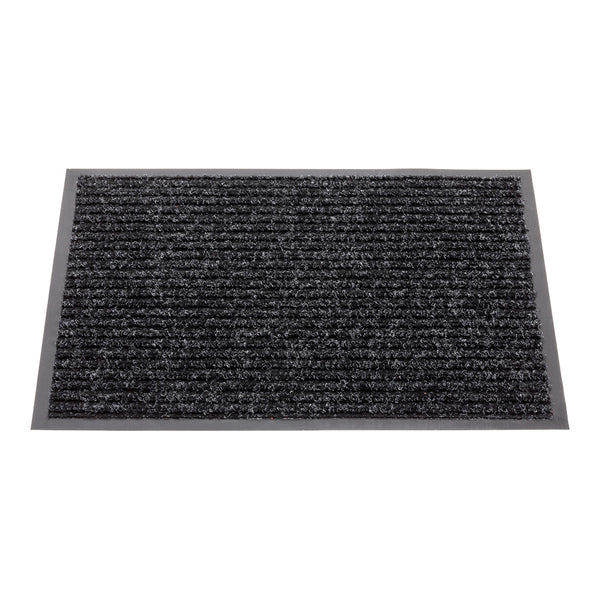 Maintain your pristine floors with our Comfy Feet Black Carpet Floor Mat. Crafted from durable polyester fibers, this floor mat has a ribbed design that effectively traps dirt, debris, and water to keep your beautiful floors spotless, ideal for indoor and outdoor use. This black doormat has a high-quality construction that preserves its black appearance for long-lasting commercial use. Featuring a vinyl backing, this outdoor mat stays in place and prevents excess water from spilling over onto your floor while protecting your floors from scuffs or scratches. Cleaning is a breeze with this office floor mat, as it can be vacuumed or hose with water. This entryway mat measures 36 inches long by 24 inches wide. Sold in a 1 count box.