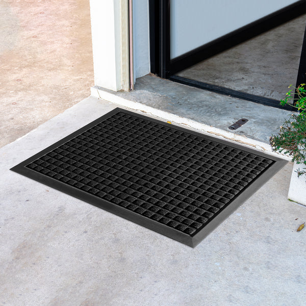BLACK HEAVY-DUTY CARPET FLOOR MAT - WAFFLE