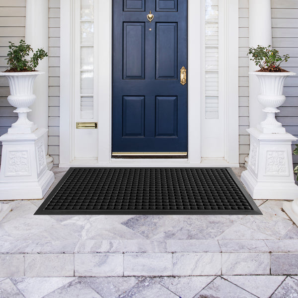 BLACK HEAVY-DUTY CARPET FLOOR MAT - WAFFLE