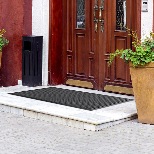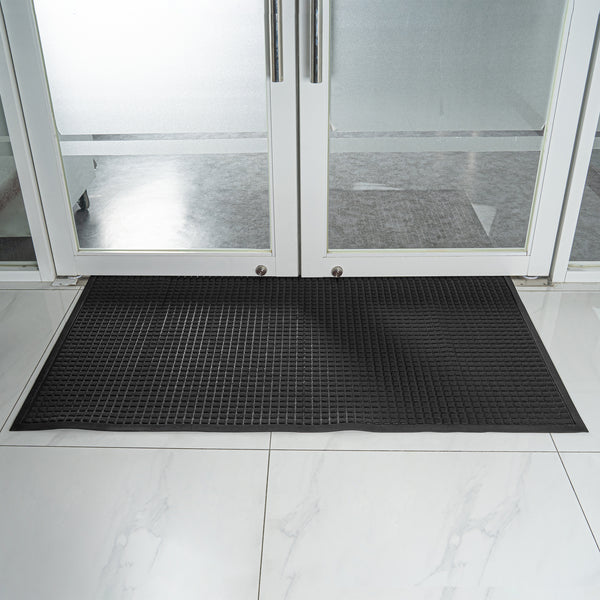 - Waffle pattern traps in dirt and debris to keep areas mess-free