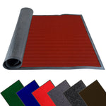 Capture dirt before it gets indoors with our Comfy Feet Dark Red Carpet Floor Mat. This doormat is crafted from high-quality polyester and scrapes off the dirt from shoes and traps it in place to maintain your clean floors, perfect for outdoor and indoor use. The ribbed design of this outdoor mat effectively captures debris and prevents excess water from spilling out onto your floors. This entryway mat has a premium construction that maintains its rich dark red appearance, ideal for long-lasting commercial use. Featuring a vinyl backing, this restaurant floor mat stays in place and promotes a safe environment at your hotel, cafe, restaurant, or other foodservice establishment. To easily clean, this entrance mat can be either vacuumed or water hosed. This office floor mat measures 36 inches long by 24 inches wide. Shipped in a 1 count box.