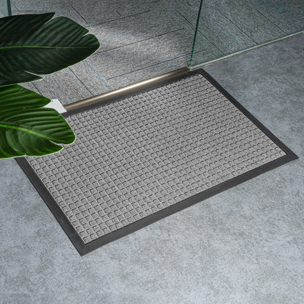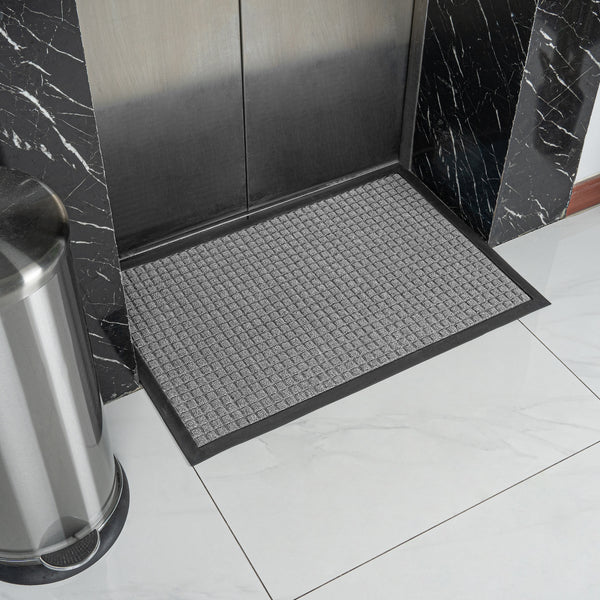 GRAY HEAVY-DUTY CARPET FLOOR MAT - WAFFLE