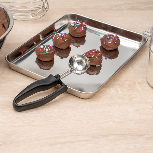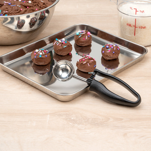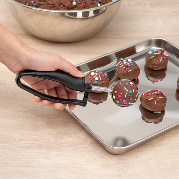 Made from durable stainless steel, these cookie scoops are break- and dent-resistant to prevent damage while scooping hard, frozen foods. Plus, they’re strong and sturdy to last you a long-time.