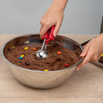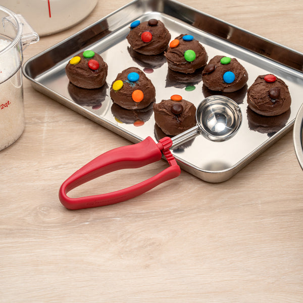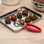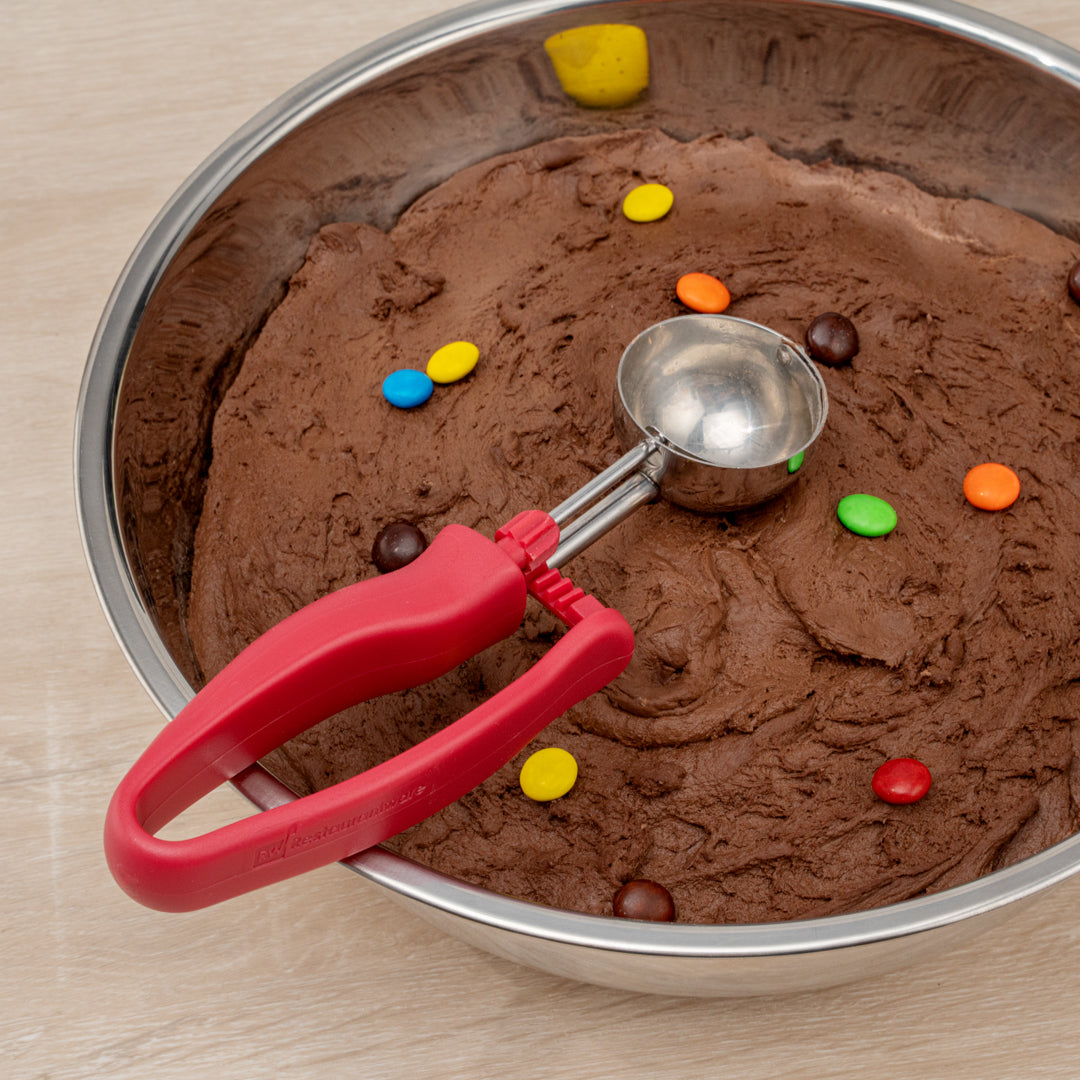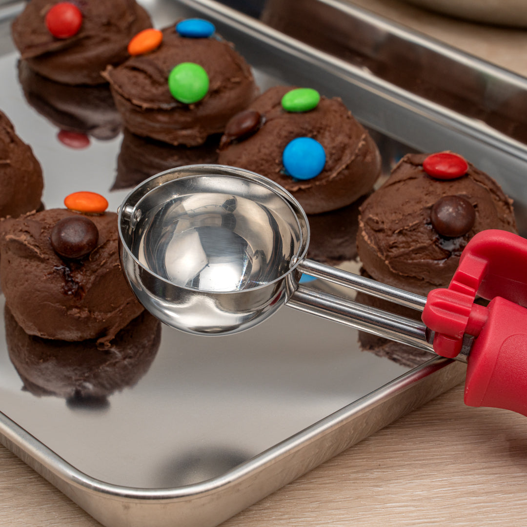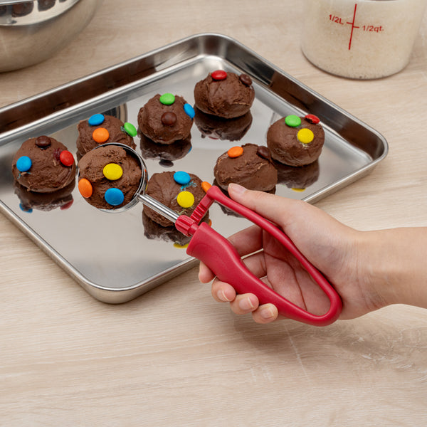 The built-in blade of these kitchen scoops effectively scrapes off every bit of ice cream to create perfectly round mounds and prevent waste. No more excess ice cream left on the scoop!