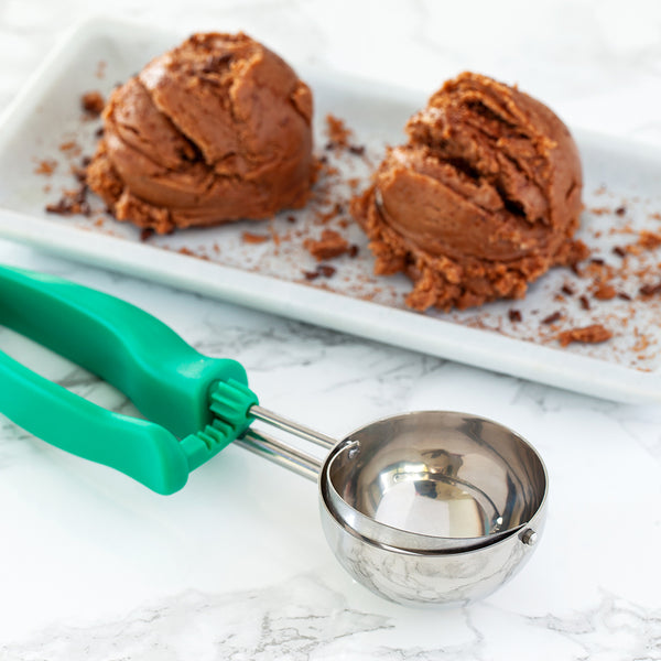 The built-in blade of these kitchen scoops effectively scrapes off every bit of ice cream to create perfectly round mounds and prevent waste. No more excess ice cream left on the scoop!