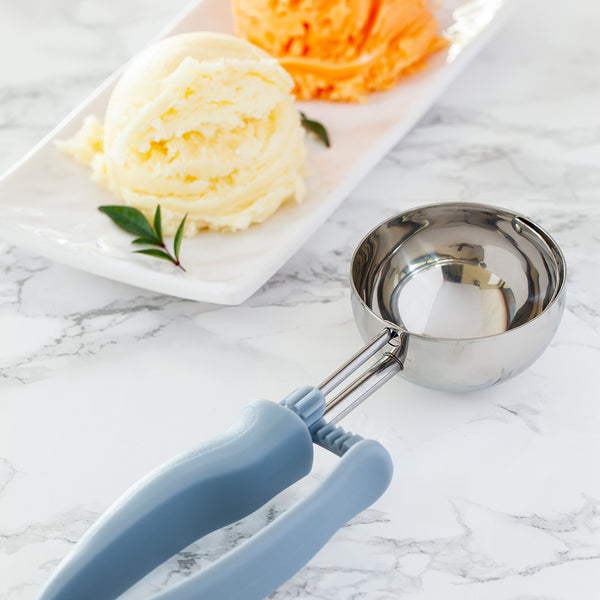 The built-in blade of these kitchen scoops effectively scrapes off every bit of ice cream to create perfectly round mounds and prevent waste. No more excess ice cream left on the scoop!
