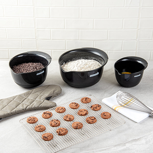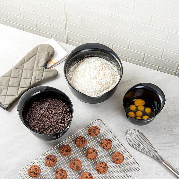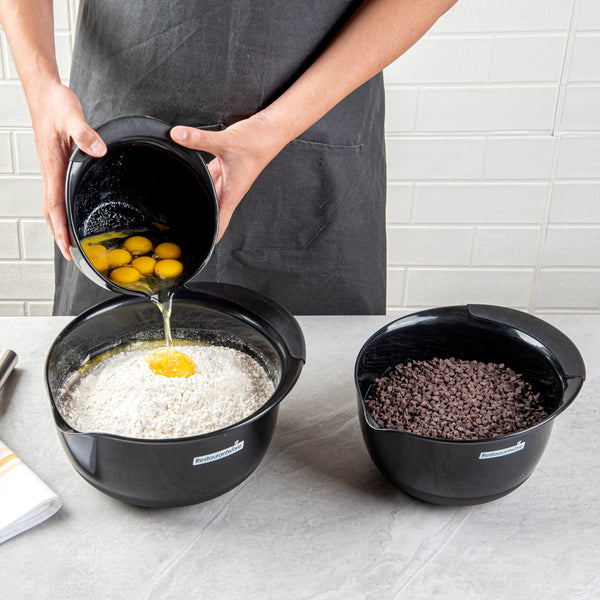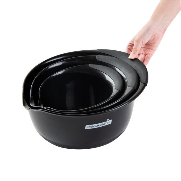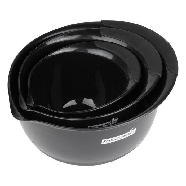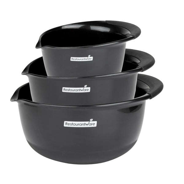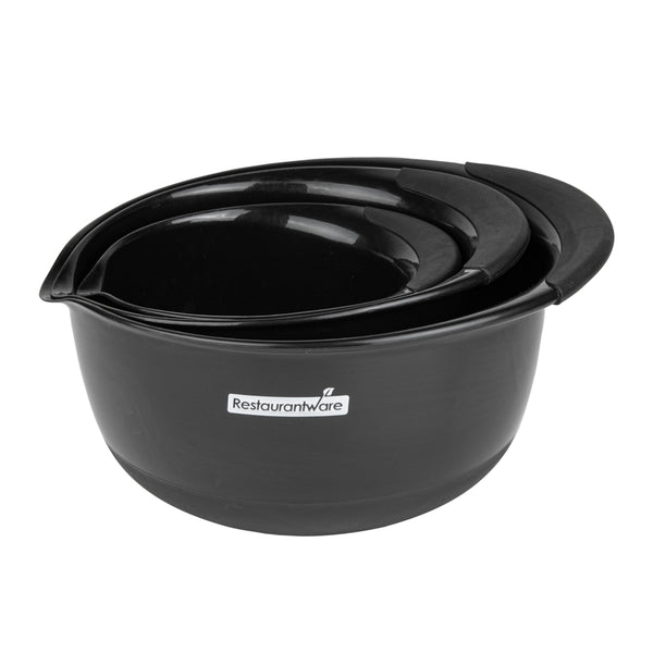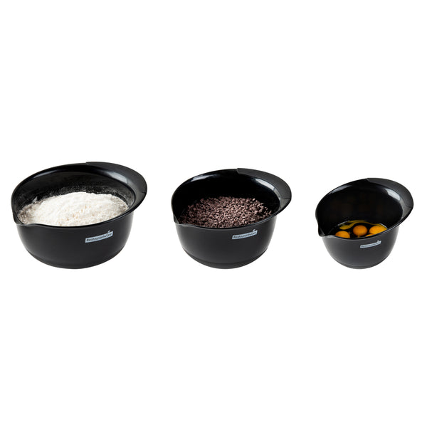 BLACK PLASTIC 3-PIECE MIXING BOWL SET - WITH POUR SPOUT
