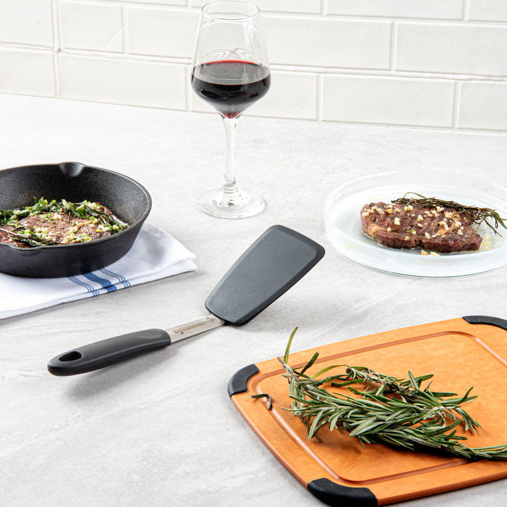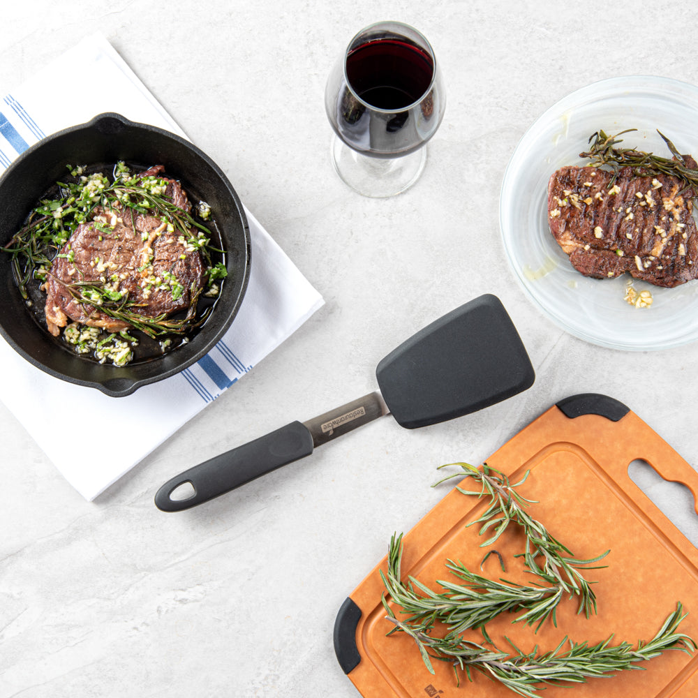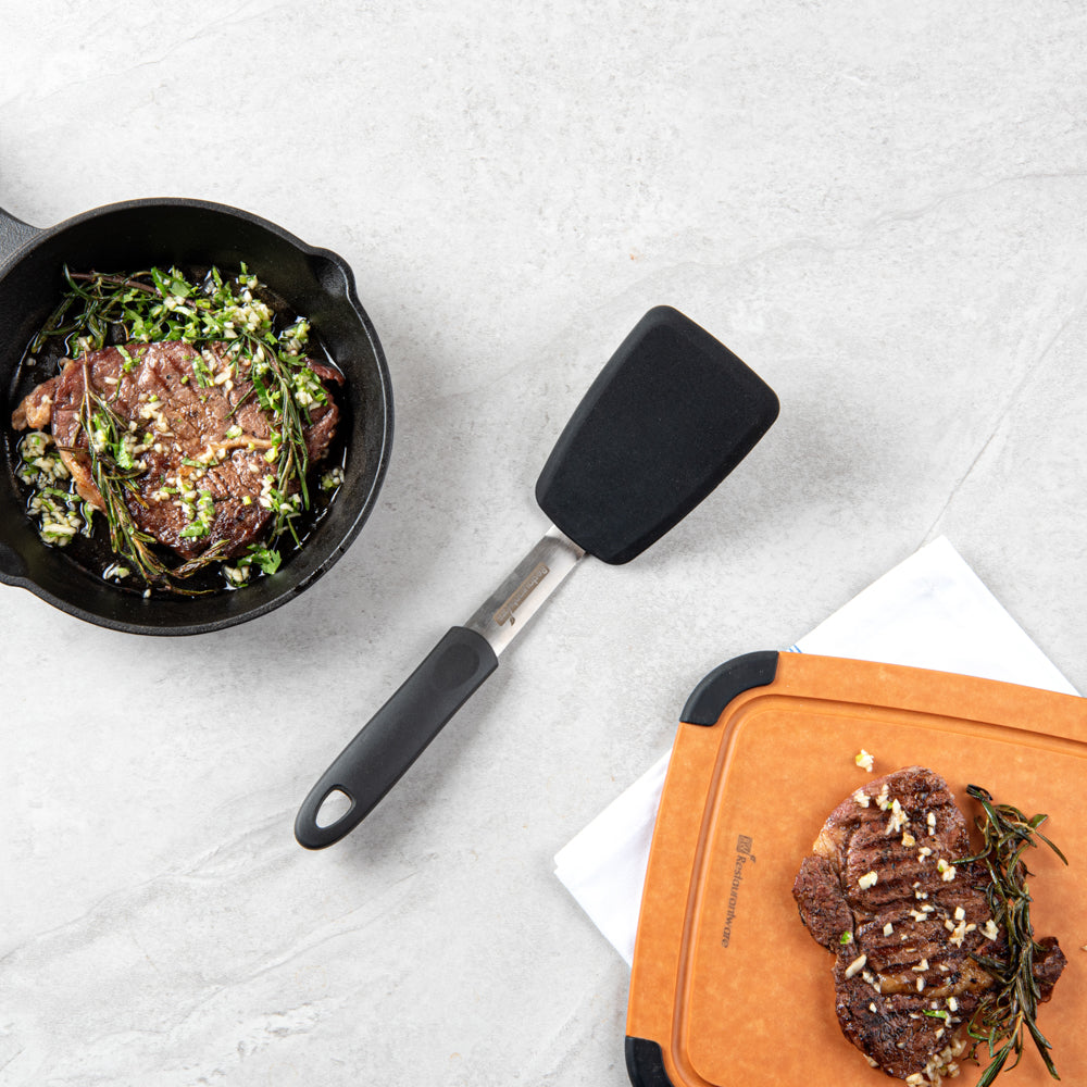 The 403 stainless steel body of these flexible spatulas provides them with durability to withstand high-heat temperatures while cooking. Won't rust or corrode for a long time!
