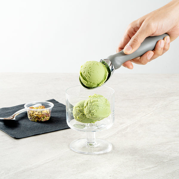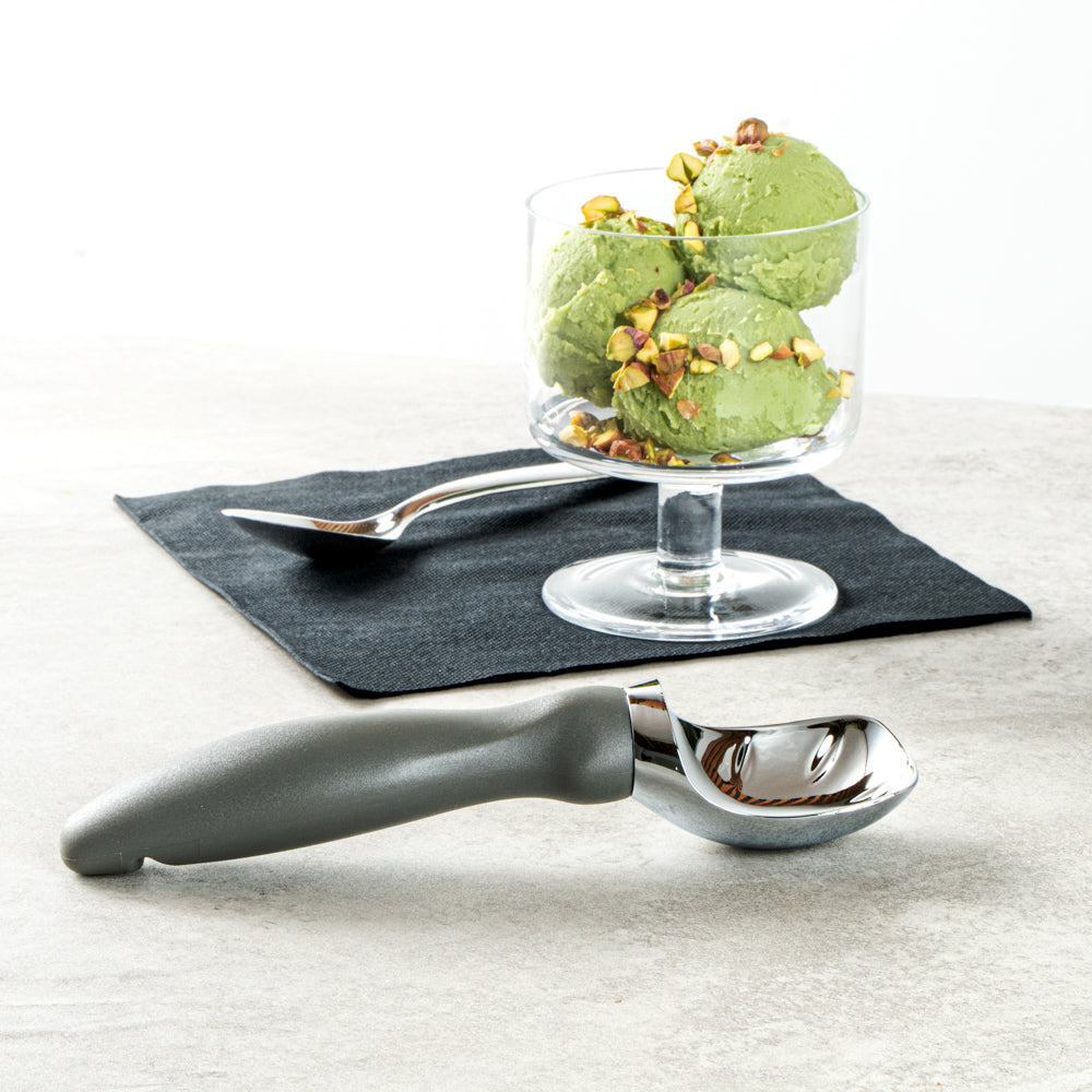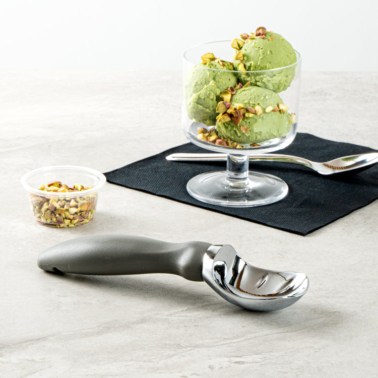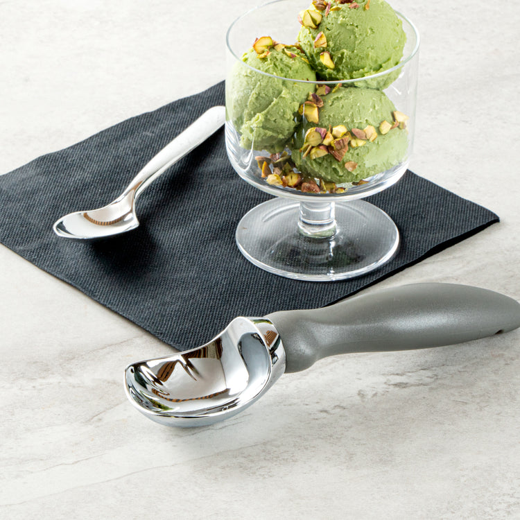 The unique design of these ice cream dishers includes carefully shaped grooves in the head. Not just aiding in portion control, the cleverly constructed grooves ensure that no ice cream is left behind.