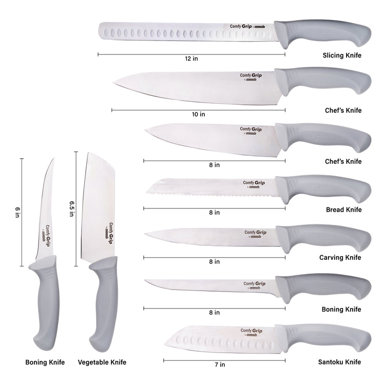GRAY STAINLESS STEEL 9-PIECE KNIFE SET