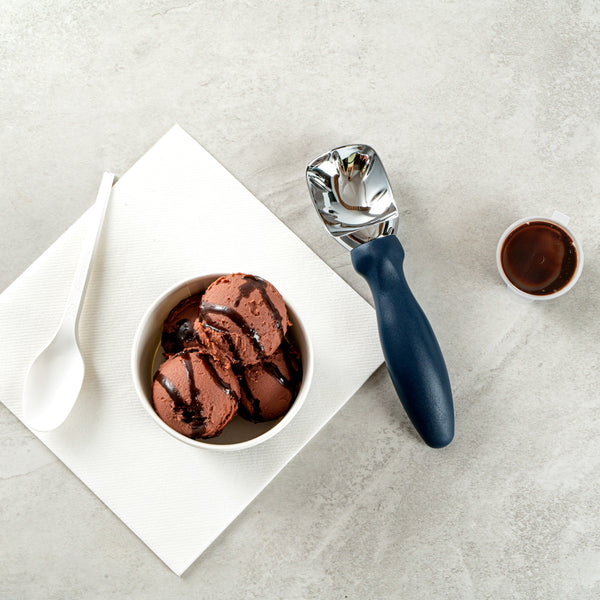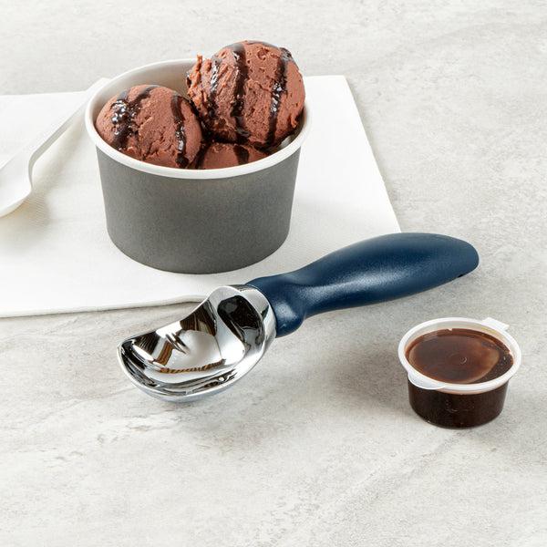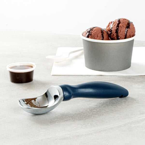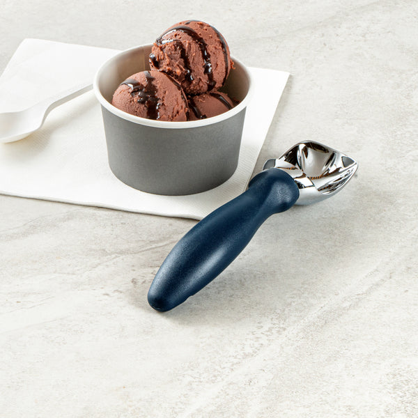 These classic ice cream scoops come with an easy-to-grip ergonomic plastic handle, delivering comfort and ease with each scoop. The handle features a notch to lift stubborn container lids.