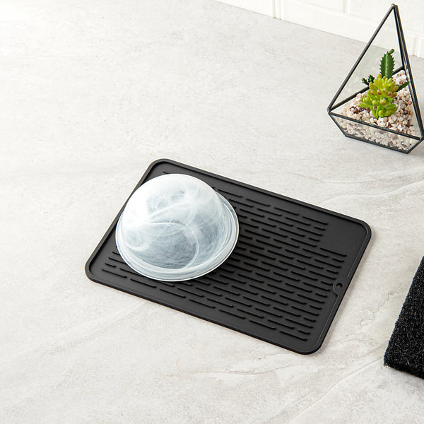 RECTANGLE BLACK SILICONE DISH DRYING MAT