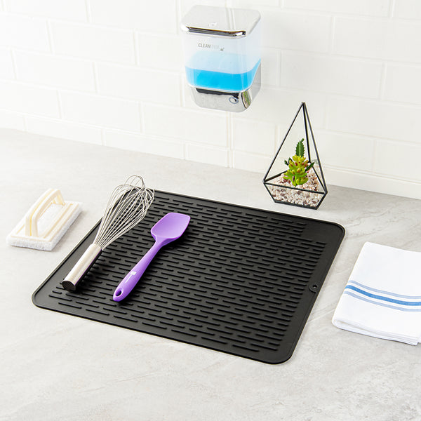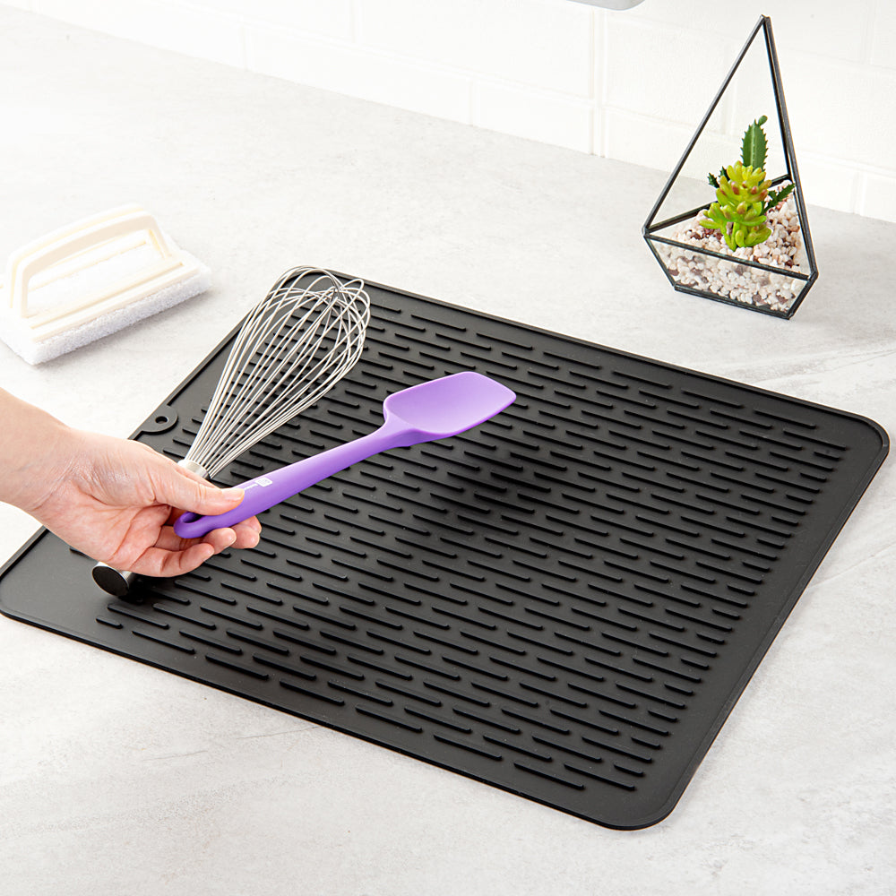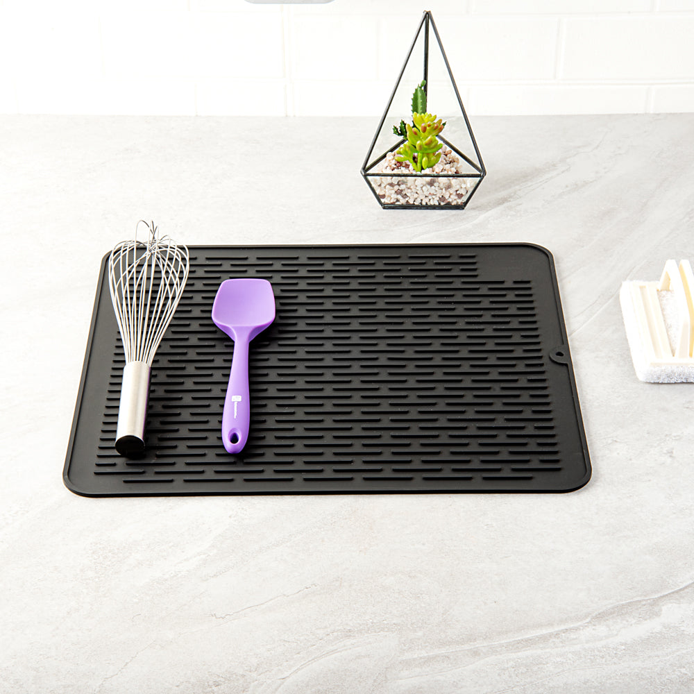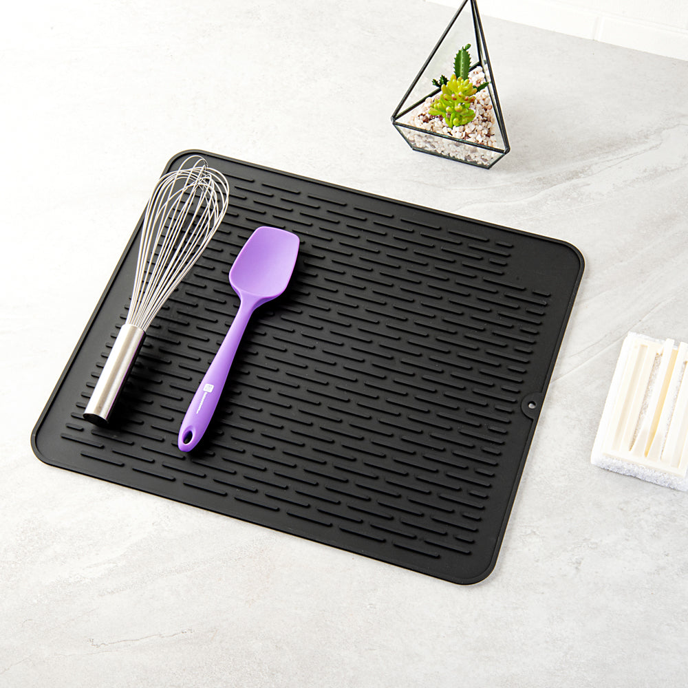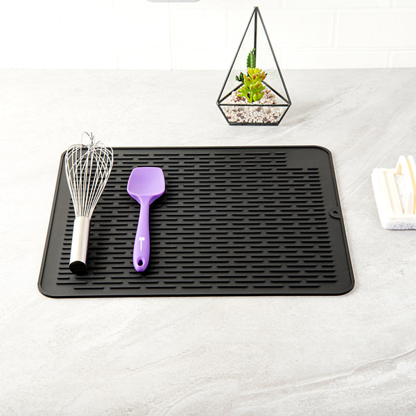RECTANGLE BLACK SILICONE DISH DRYING MAT