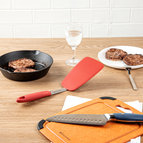 The 403 stainless steel body of these flexible spatulas provides them with durability to withstand high-heat temperatures while cooking. Won't rust or corrode for a long time!