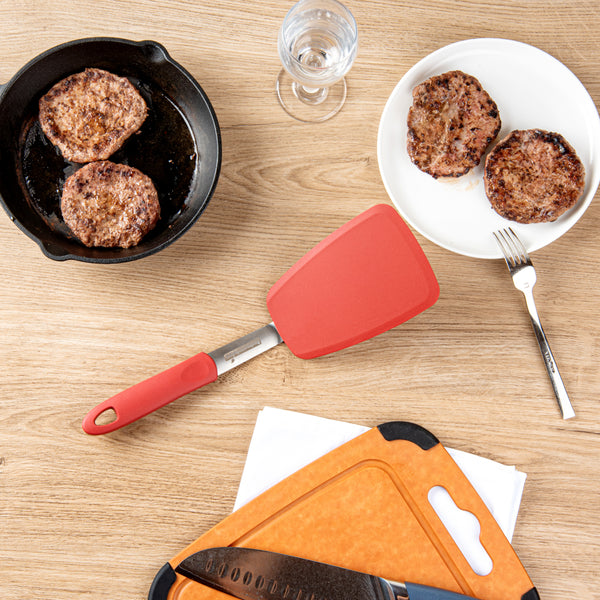 The rubber grip of the handle in these silicone solid turners allows you to maneuver them easily without having to strain yourself. Built-in hanging hole for easy storage and access.