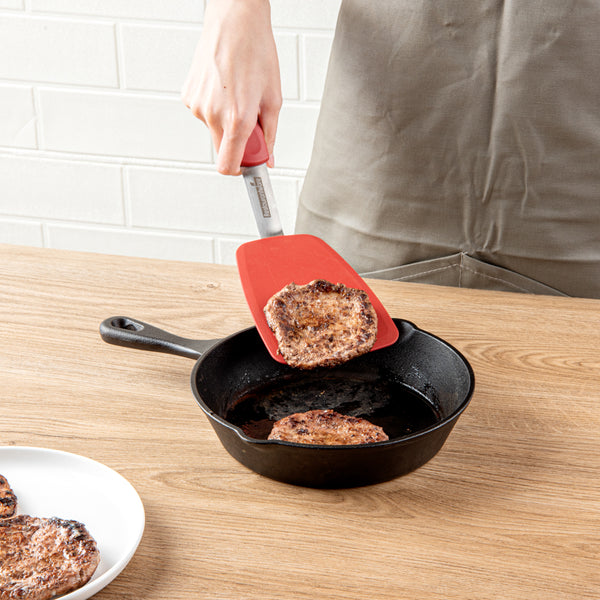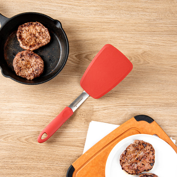 Conveniently use these silicone turners for flipping or turning pancakes, eggs, patties, or crepes. These solid spatulas easily reach the bottom of your pans.