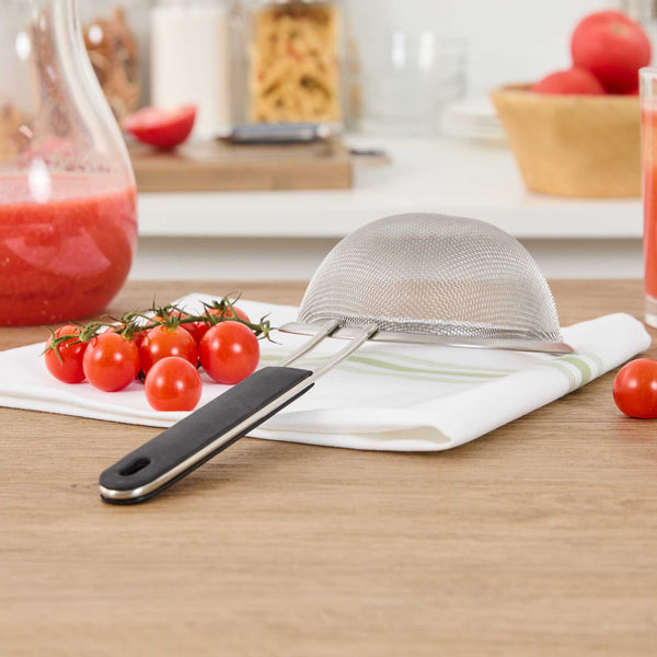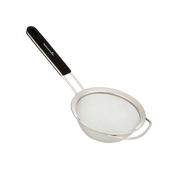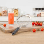 ROUND STAINLESS STEEL EXTRA FINE MESH STRAINER - WITH SILICONE HANDLE