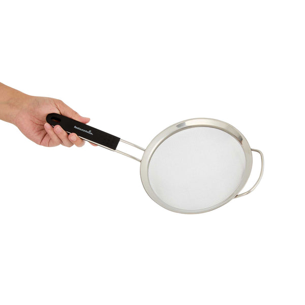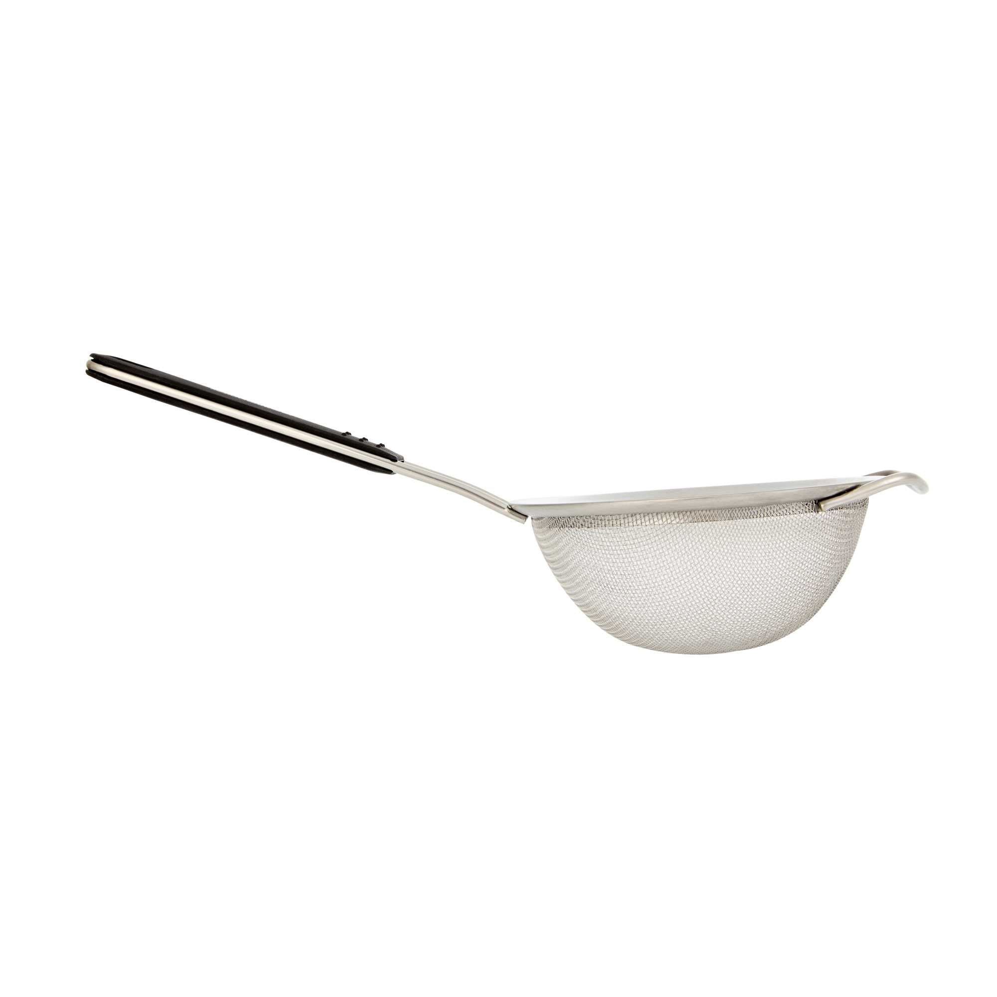 ROUND STAINLESS STEEL EXTRA FINE MESH STRAINER - WITH SILICONE HANDLE