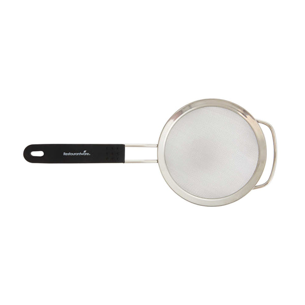 ROUND STAINLESS STEEL EXTRA FINE MESH STRAINER - WITH SILICONE HANDLE