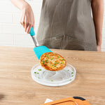 The rubber grip of the handle in these silicone solid turners allows you to maneuver them easily without having to strain yourself. Built-in hanging hole for easy storage and access.