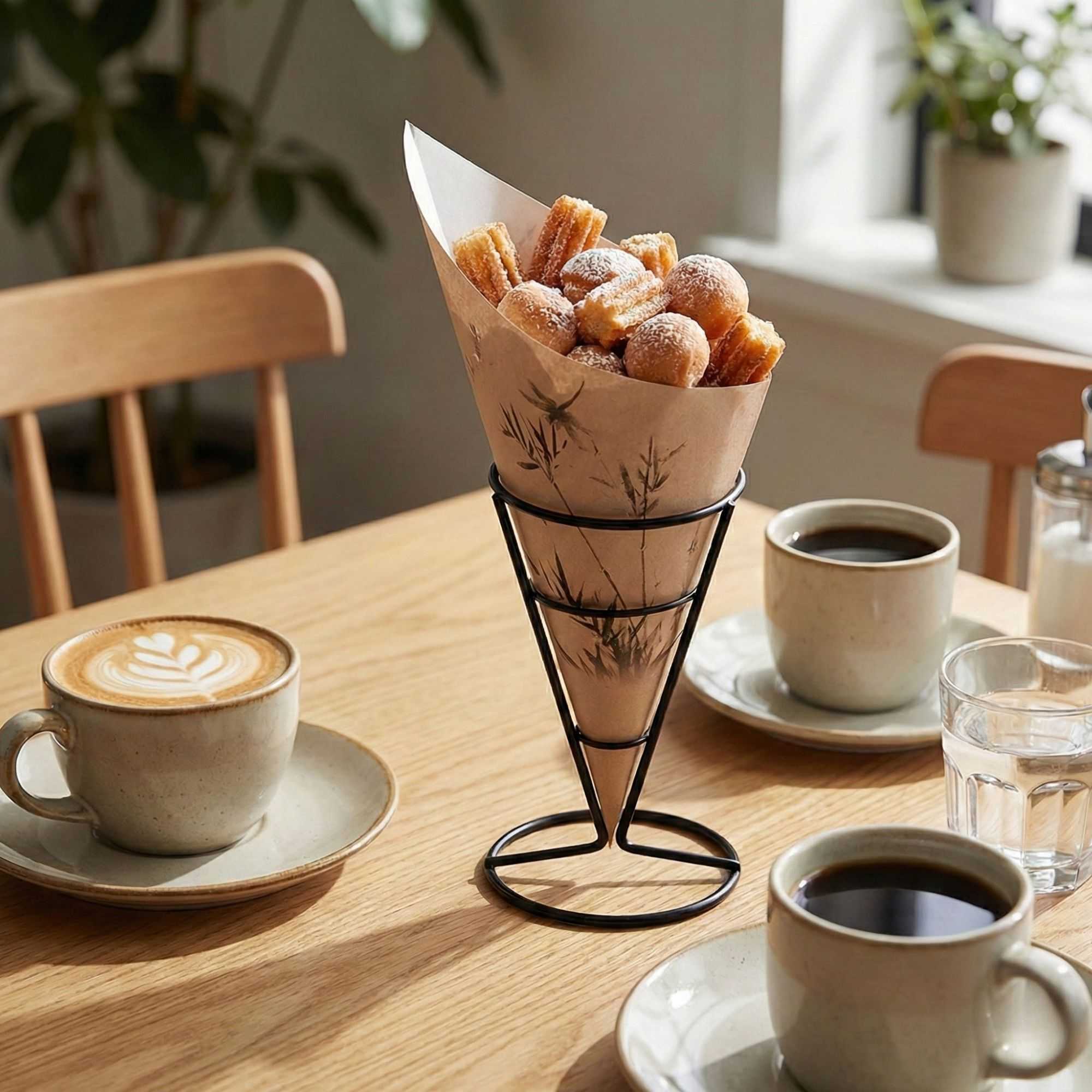 Serve buttery popcorn and fried onion rings using our Cone Tek Paper Food Cones. These food paper cones are made from premium heavyweight paper to hold your appetizers and desserts with ease. Featuring a stylish bamboo print, these popcorn paper cones are the perfect addition to any party, catered event, or other special occasion. These food paper cones can also be recycled for an eco-friendly disposal. These appetizer cones are coated with a grease-resistant lining to keep your mouthwatering treats from getting soggy. With an easy-to-hold design, these food paper cones are great for passing out warm or cold foods at events. For an elevated look, pair these popcorn paper cones with our collection of cone stands to beautifully display your treats. These appetizer cones measure 11.5 inches long and 5.5 inches wide and are shipped in a 100 count box. Cone stands are available and sold separately.