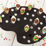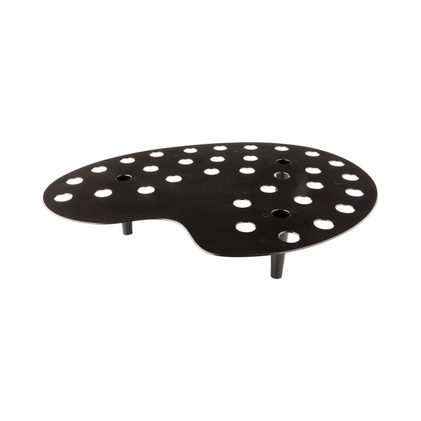 Introduce your customers to an elegant way to display their treats with our Cone Tek Black Plastic Palette Cone Holders. These artist palette-shaped cone holder trays securely hold an assortment of 35 mini waffle cones. Featuring 3 slightly recessed legs, these mini food cone stands create an illusion of floating when positioned correctly. Made with premium plastic, these cone holders can also be kept as an attractive centerpiece. These durable, plastic cone stands provide stability for displaying mini appetizers or dessert cones. Featuring a lightweight construction, these plastic cone display stands are easy to move and rearrange. These reusable black plastic cone holders provide a stylish solution for any shop, bakery, or catering event. The sleek, black finish of these plastic palate cone holders adds a touch of sophistication while showcasing your fares. Measuring 16 inches in length by 13 inches wide, these spacious cone holder trays give each cone its own slot for optimum visibility, allowing customers to view many flavor options. Sold in a 4 count box.