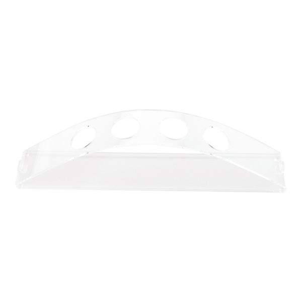 Display flavorful treats with style in this Clear Plastic Rising Sun Cone Stand. Constructed from high-quality plastic, this cone holder display is scratch-resistant and easy to wipe down after use to maintain its premium look. Featuring a clear finish, this plastic food display brilliantly showcases the colors of your mouthwatering ice cream cones, french fry cones, fruit cones, and other delicious foods. This durable food cone holder has 4 built-in slots that measure 3.2 centimeters in diameter which securely holds our Cone Tek medium-sized cones (SKU: RWB0153 and RWB0108). Measuring 12 inches in length by 3.5 inches in height, this clear food display is shipped unassembled for space-saving storage at your cafe, restaurant, bakery, or ice cream shop. Sold in a 1 count box. Food cones are available and sold separately.