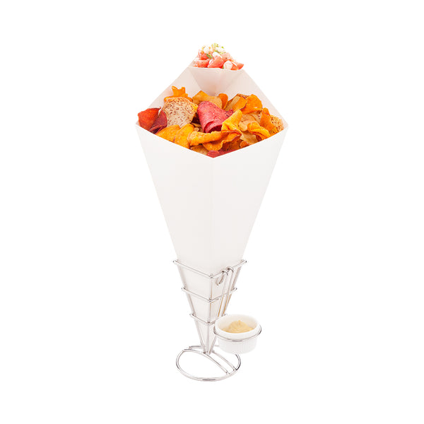 WHITE PAPER FOOD CONE - WITH DIPPING POCKET