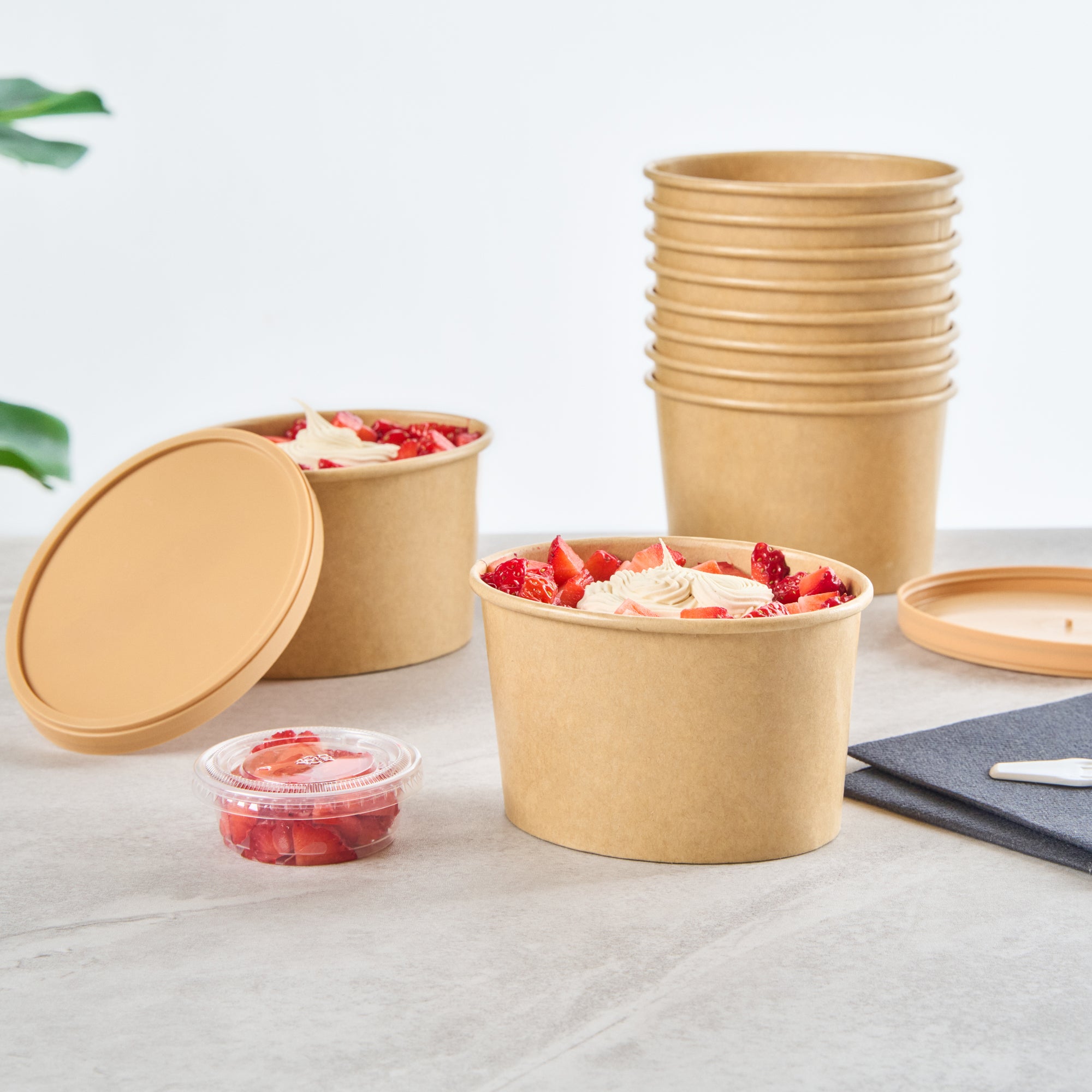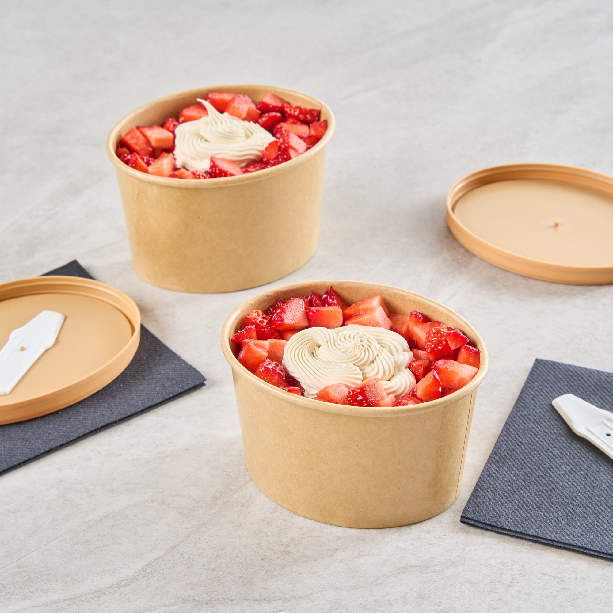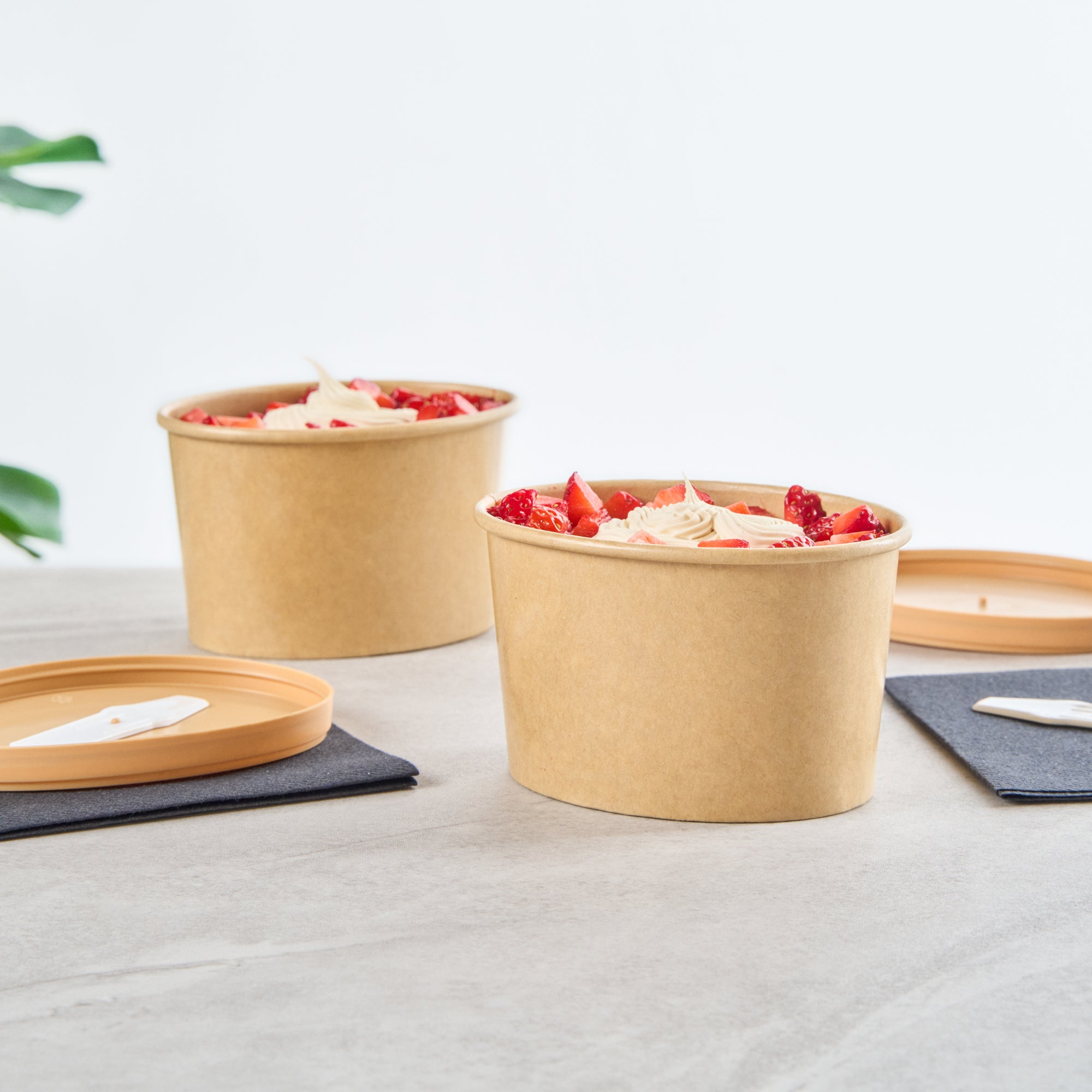 Add a gourmet touch to desserts with our Coppetta 12-ounce Oval Kraft Paper To Go Cups. These oval ice cream cups feature a grease-resistant PE lining to keep oil from seeping through, ensuring a neat food presentation. Crafted from durable paper, these takeaway dessert cups are suitable for a variety of dishes, from soups to frozen yogurts. Eco-conscious customers will appreciate that these kraft paper cups are recyclable, providing an environmentally friendly option for your foodservice needs. Designed with a rolled rim, these to go cups securely hold coordinating lids (SKU: RWA1748BR) for worry-free transport. The natural kraft finish of these disposable cups adds a rustic charm, making them an attractive choice for catering events or food trucks. Additionally, these round ice cream cups are freezer-safe, allowing you to store leftovers effortlessly. Measuring 4.53 inches in length by 3.62 inches in width by 2.68 inches in height, these kraft paper cups have a 12-ounce capacity to accommodate a generous serving size. Sold in a 200 count box.