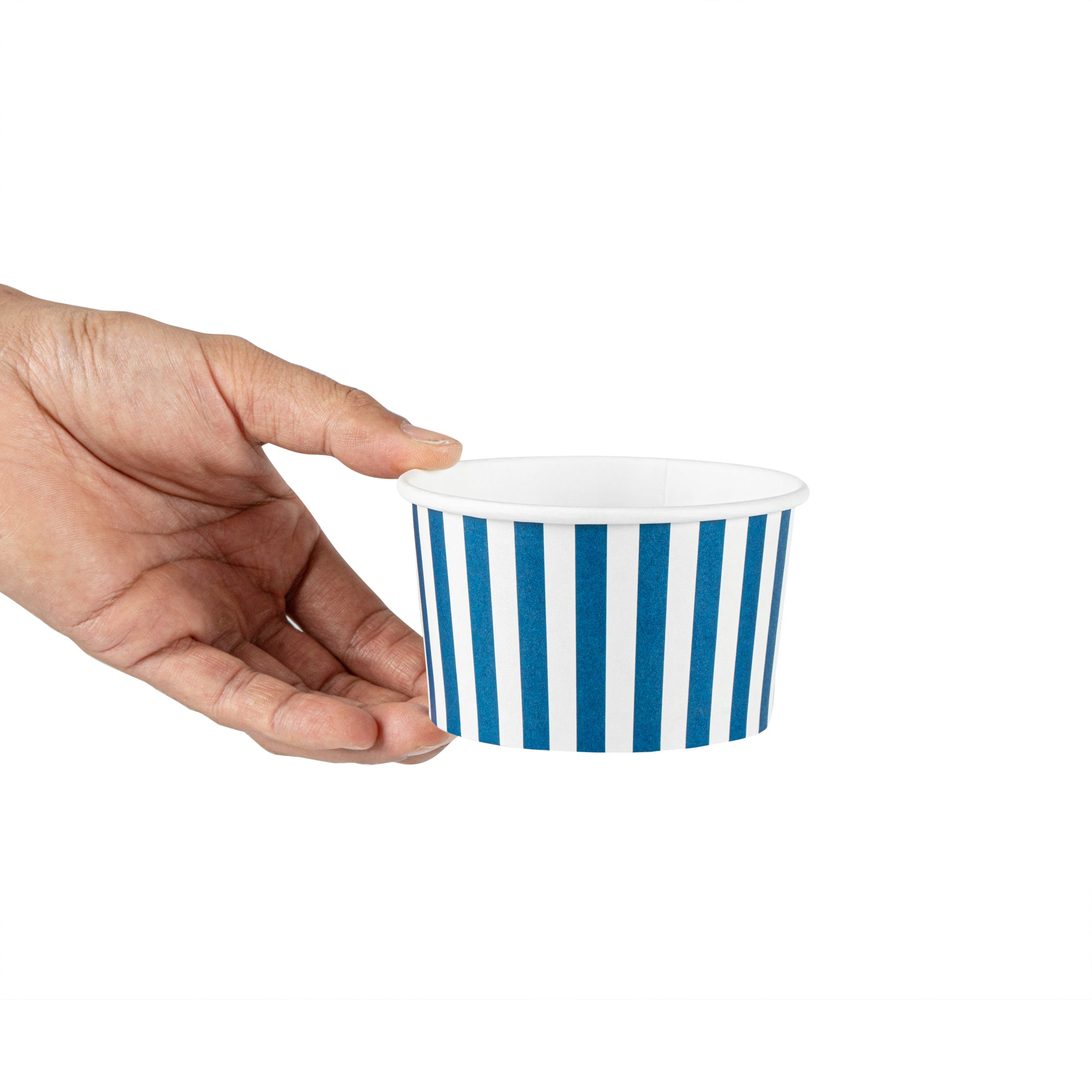 Great for serving hot or cold dishes! Crafted from thick paper, these dessert cups are durable and ideal for serving ice cream at a birthday party or warm chili at a cookoff.