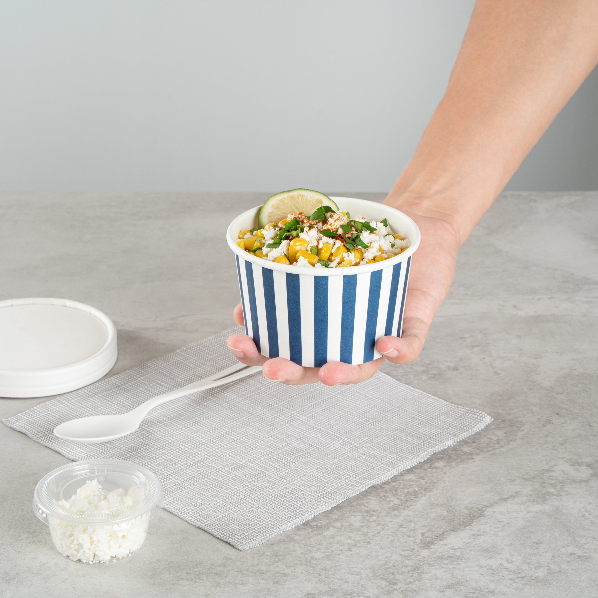 Pair these disposable paper cups with their compatible lids for a secure take out solution. They form a secure seal that ensures your treats won’t spill out to avoid sticky messes.