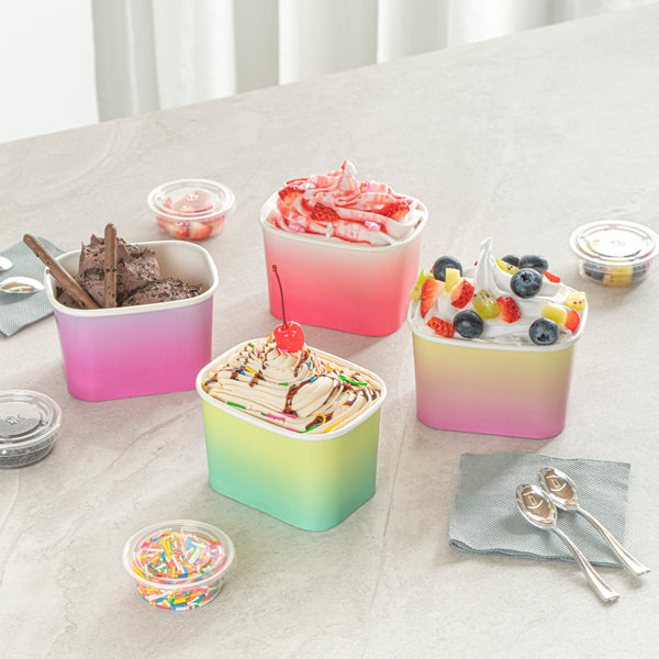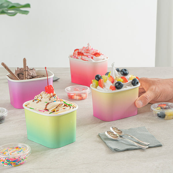 Ensure leak-free service with our versatile Coppetta Leak-Resistant Paper Cups. These 12oz paper cups boast a double-coated design that prevents liquid leakage, effectively reducing waste and enhancing operational efficiency. Ideal for various foodservice applications, these recyclable ice cream cups feature a hot food-friendly construction, making them perfect for serving soups, macaroni and cheese, and other hot dishes in any restaurant or café setting. The grease-resistant coating maintains their appearance even with snacks, ensuring a clean and professional presentation at all times. Measuring 4.21 inches in length, these assorted-color cups are crafted from high-quality paper, offering a reliable and sustainable option for eco-conscious establishments. Elevate your service standards with these soup paper cups that seamlessly combine functionality and style. Each order includes 200 Coppetta Leak-Resistant Paper Cups.