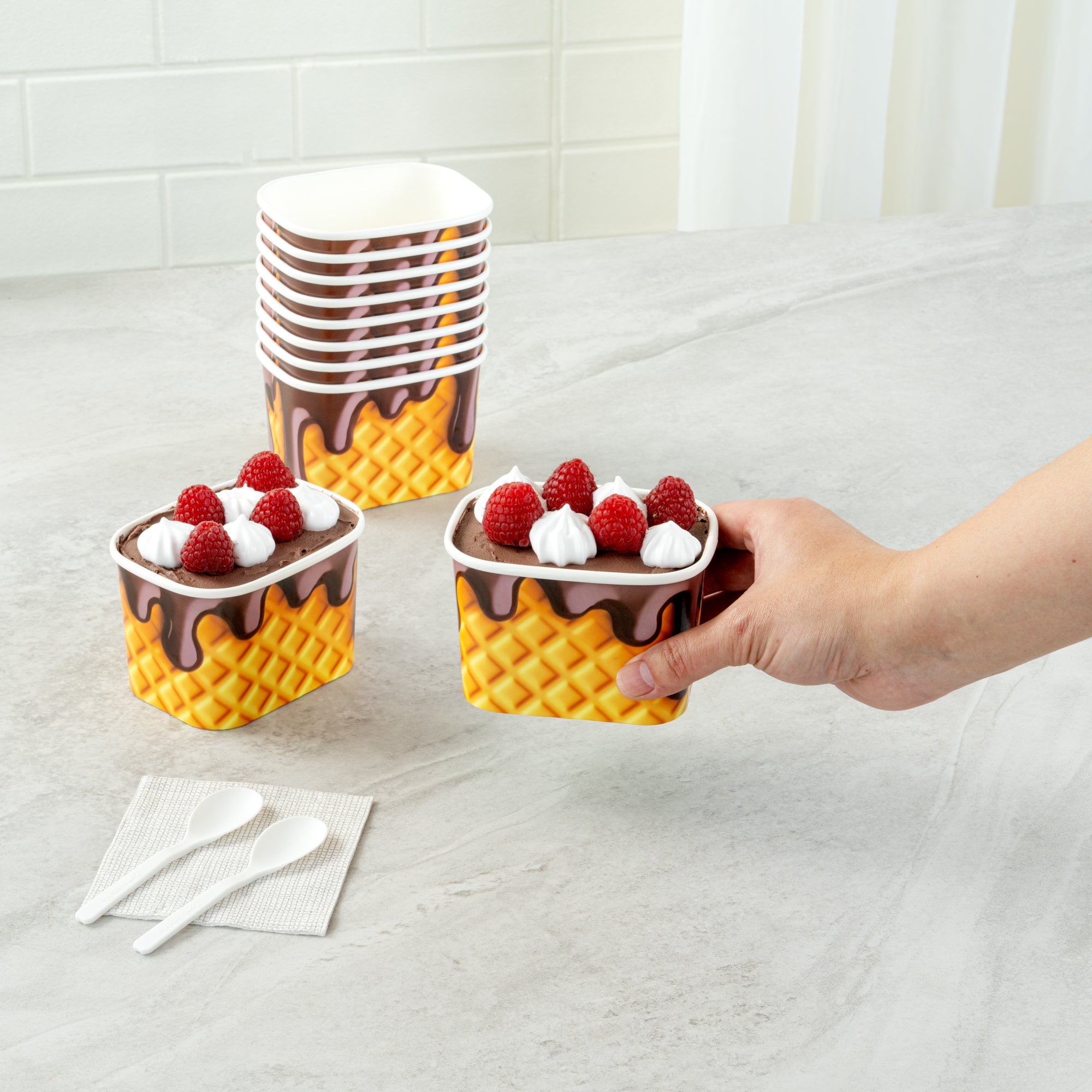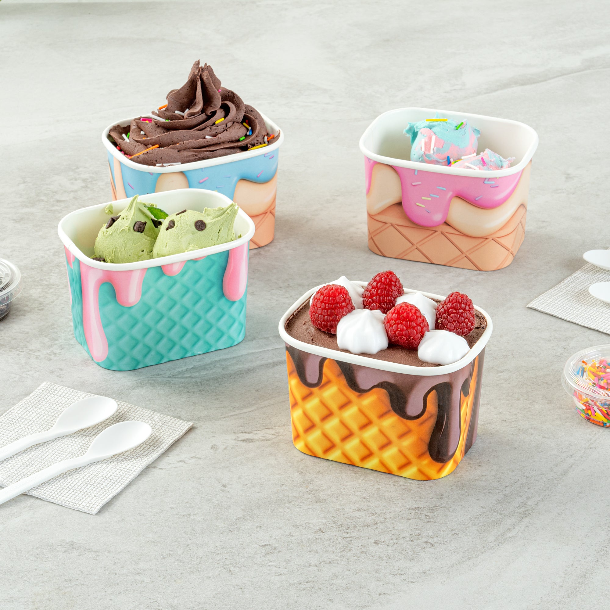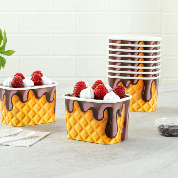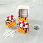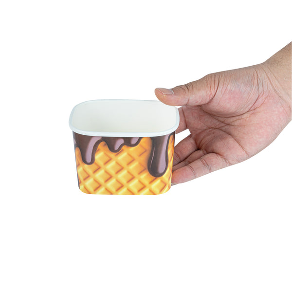 Elevate your service with leak-resistant beverage solutions. Coppetta Yellow Paper Cup offers a sturdy construction with a waterproof coating both inside and out, ensuring a mess-free experience while serving any 12 oz paper cup size drinks. Designed for versatility, this square paper to go cup is perfect for both hot and cold applications, allowing you to serve steaming soups and frozen desserts with ease. Made from recyclable materials, this disposable paper cup supports your eco-friendly initiatives without compromising on quality. Each cup measures 4.21 inches in length, providing ample space for a variety of treats. Enhance your foodservice operation with a reliable, grease-resistant, and freezer-safe option that meets your high standards. Each order includes 50 Coppetta Yellow Paper Cup.